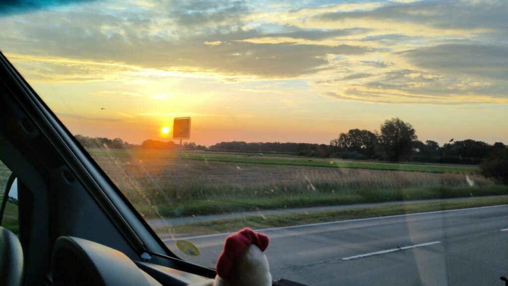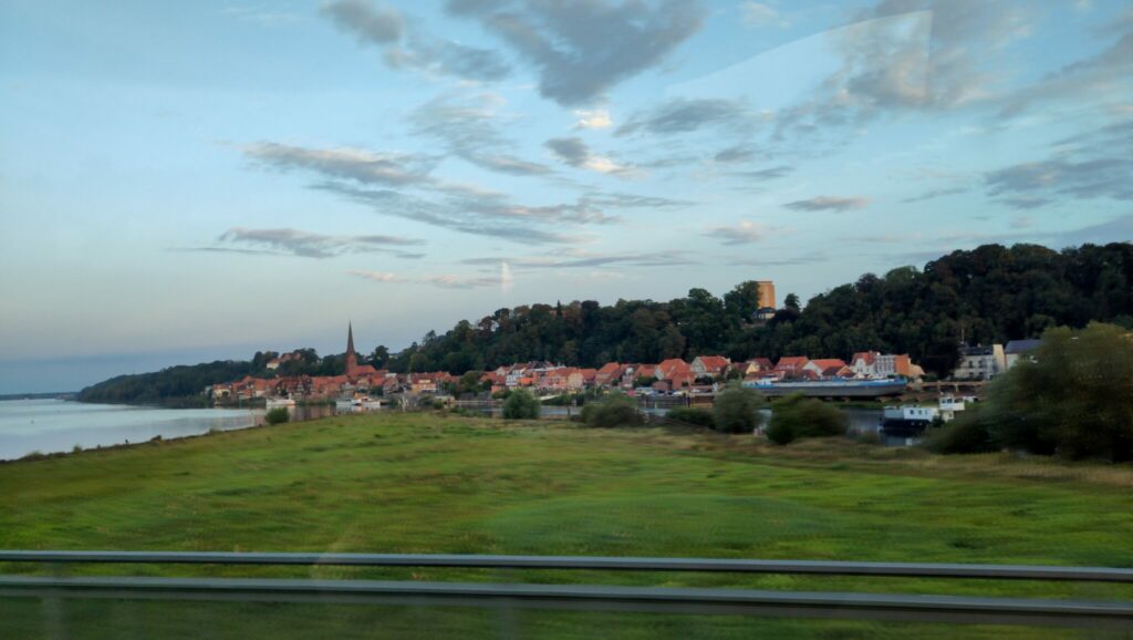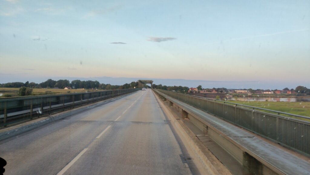 Los geht’s! Wir haben beide schlecht geschlafen und sind früh wach, also geht es schon kurz nach 7 los. Bei ein wenig Sonnenschein überqueren wir die Elbe und verabschieden uns von unserer schönen Heimat.