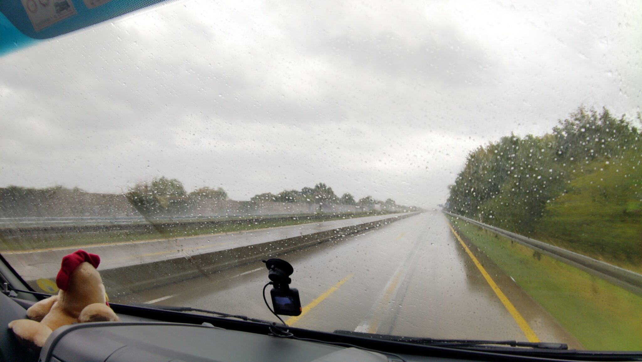 Das Wetter unterwegs ist ausgesprochen nass und windig, so kommen wir eher gemächlich voran, das passt schon. Je mehr wir nach Süden fahren, desto aggressiver fahren die Leute aber auch, denn es ist überall voll und jeder hat es eilig. So sehen wir viele Unfälle und sind froh, nicht selbst betroffen zu sein.