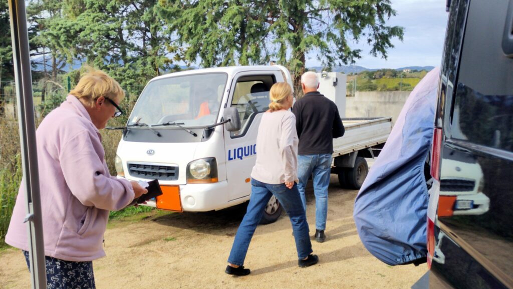 Am Montag ist wieder ein Arbeitstag. Gegen Mittag kommt tatsächlich der Gasmann und liefert die Flasche an und nimmt die leere mit. Doller Service, für gerade einmal 25€. Nun haben wir wieder genug Gas für die nächsten Wochen und gut für die Nerven ist es auch – die italienische Gasflasche ist ja schon seit Ajaccio alle.
