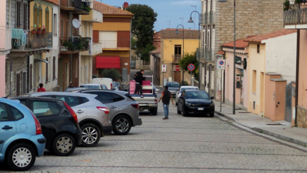 Um zum Fähranleger zu kommen, muss man eine enge, steile Straße um die Altstadt von Bonifacio nehmen, wir hatten uns das gestern schon angesehen. Außerdem müssen wir rückwärts auf die Fähre fahren, ganz nach hinten – ein bisschen anstrengend. Das macht mal Anne, Andrea ist ja nicht das Rückwärtsfahrgenie. Andrea muss schob draußen aussteigen, auf der Fähre geht es eng zu. Nach gerade einmal einer Stunde erreichen wir Sardinien, ein bisschen nervös, weil die Alarmanlage ständig ausgelöst hat und wir natürlich nicht nachsehen durften. Aber alles gut, und wir fahren erleichtert rein ins Städtchen.