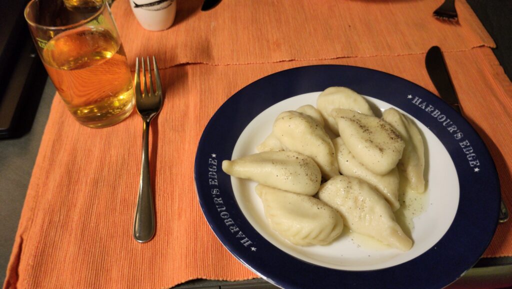 Am Abend wird wieder gekocht: sardische Culurgioni und dazu korsischen Cidre, ein Hoch auf die Völkerverständigung.