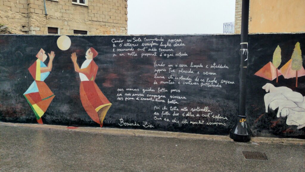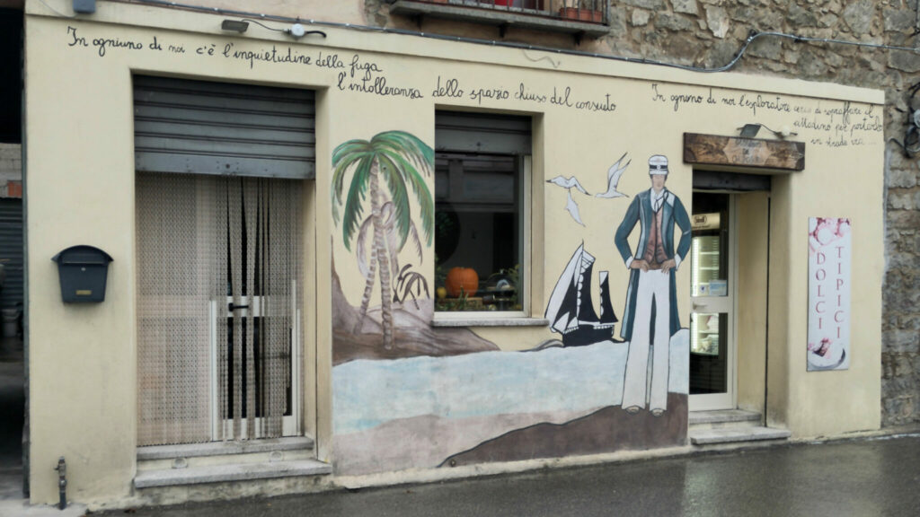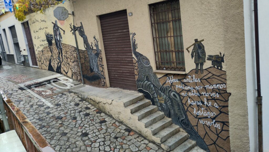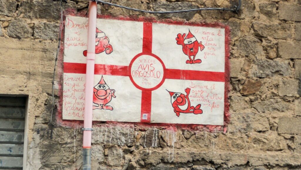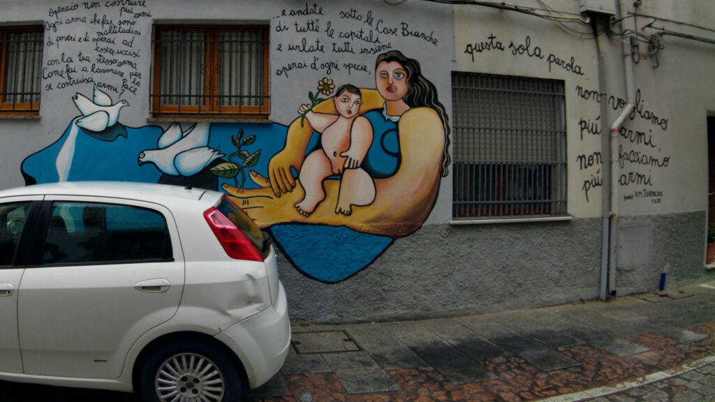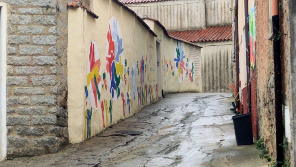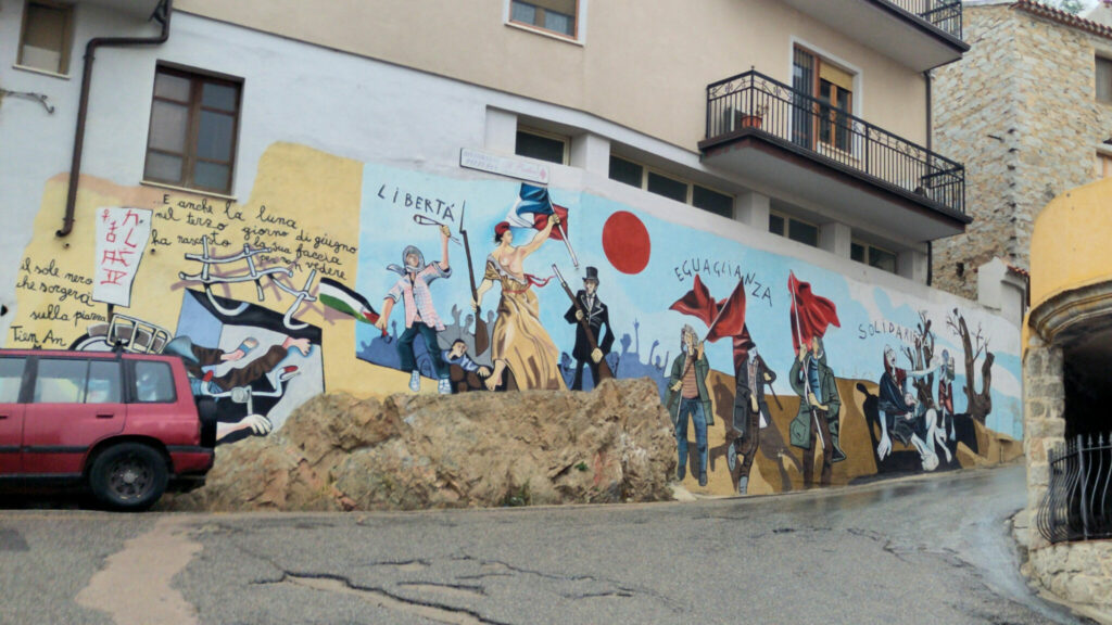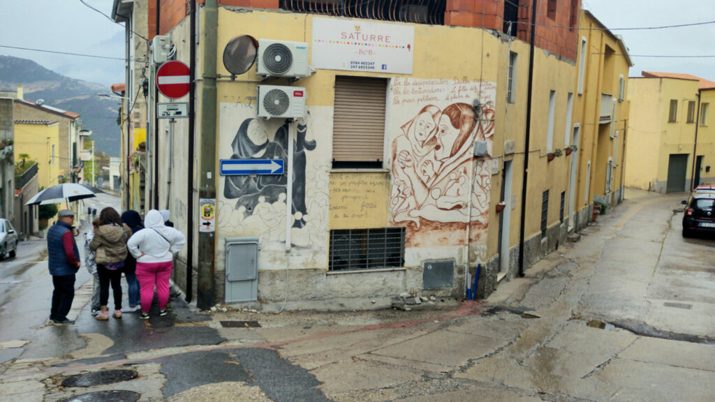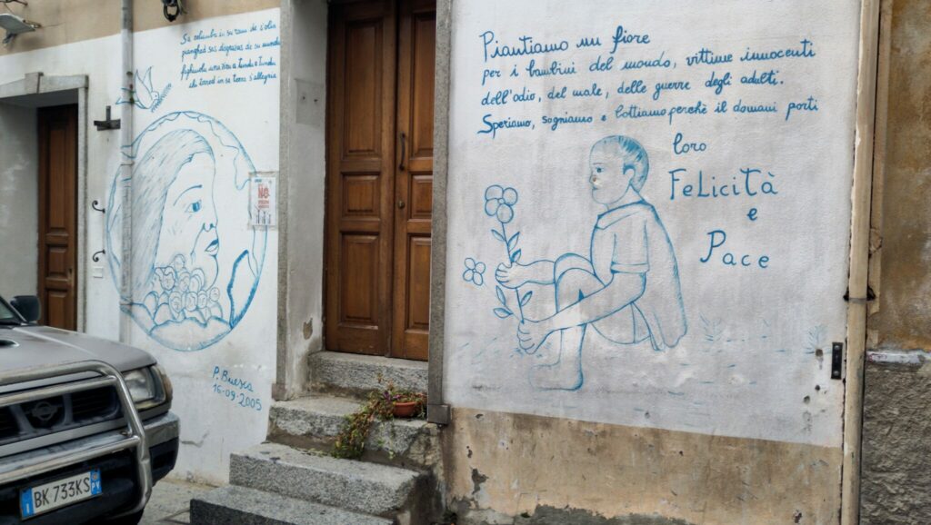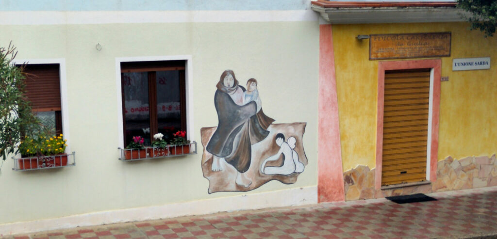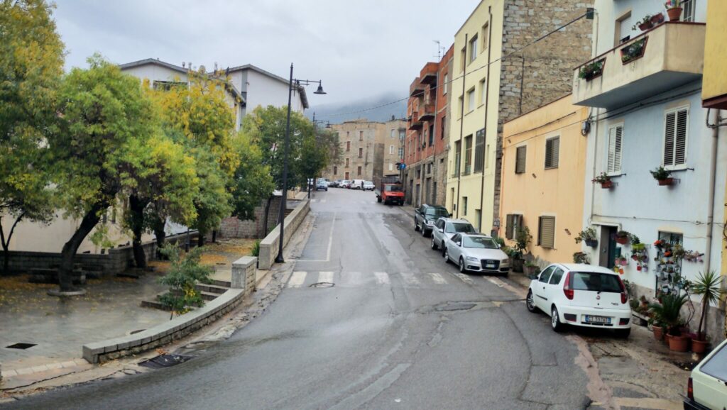 Weiter geht’s den Berg hoch. Bis auf ein paar Kühe und jede Menge Serpentinen wenig zu erzählen. Die angeblich so praktischen Parkplätze in Orgosolo erweisen sich jedoch als schwierig zu erreichen durch winzige, steile Straßen – und voll. Kurz entschlossen parken wir außerhalb und gehen zu Fuß – so groß ist der Ort ja gar nicht.