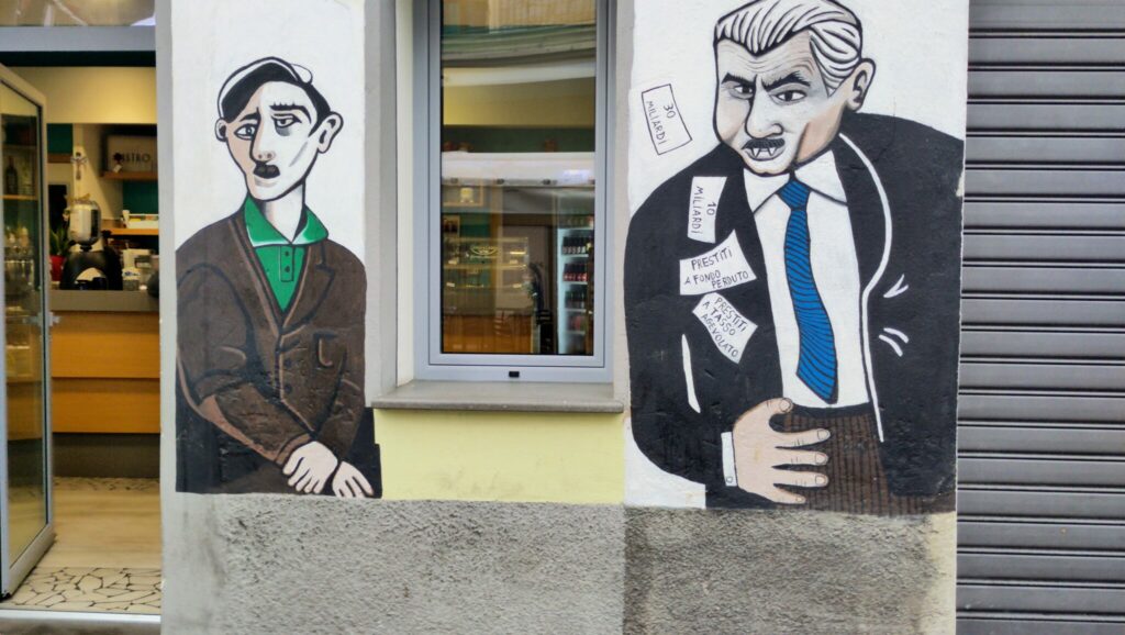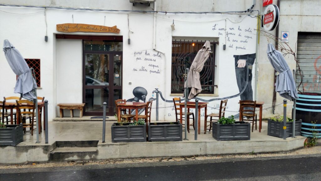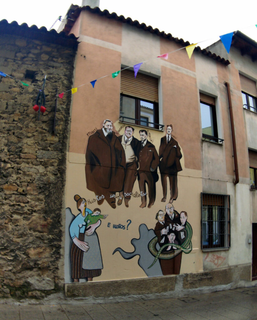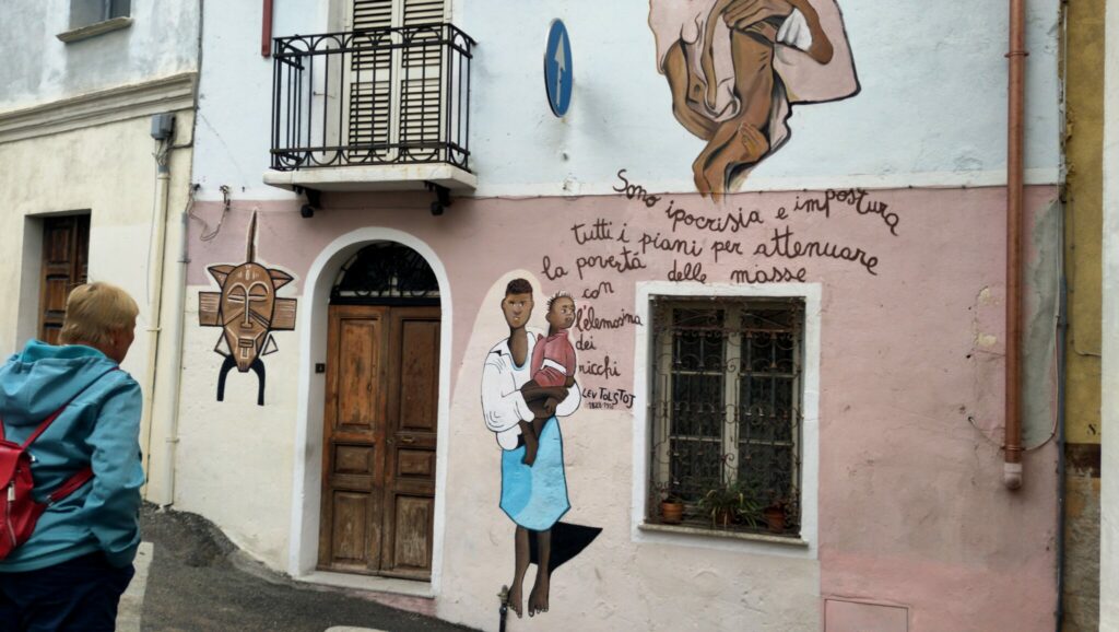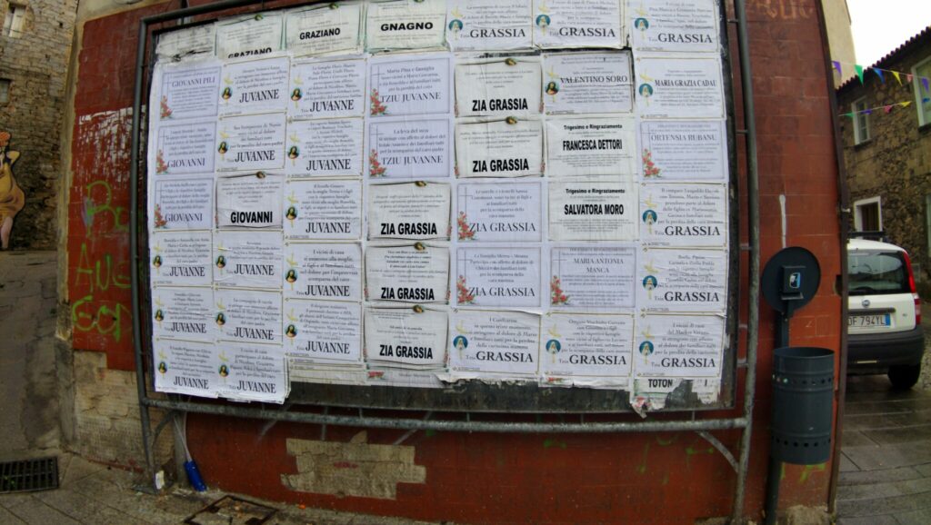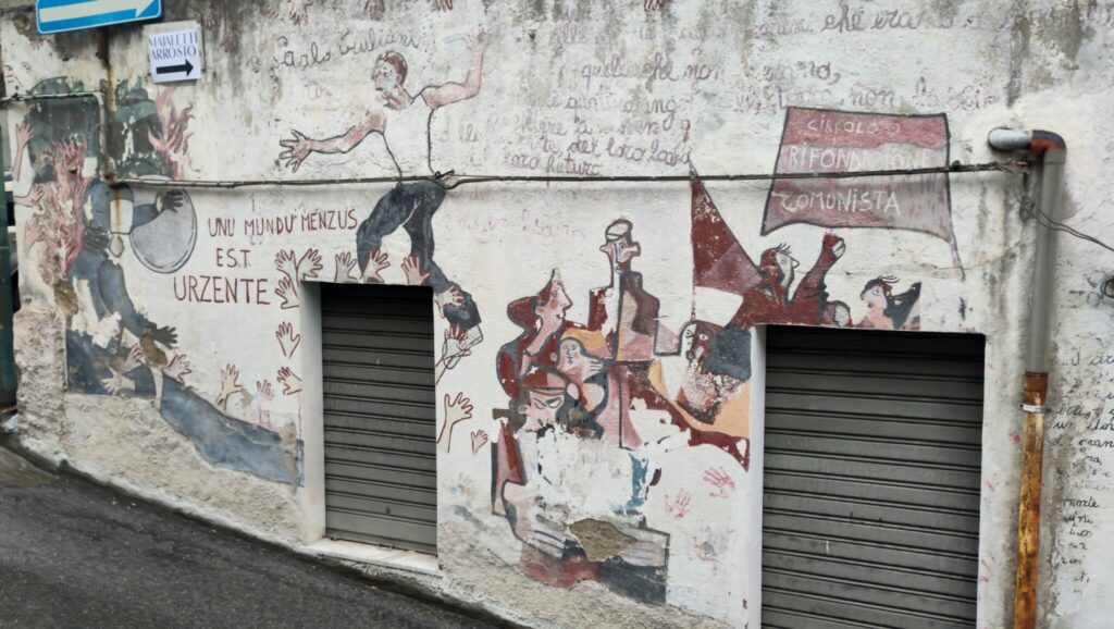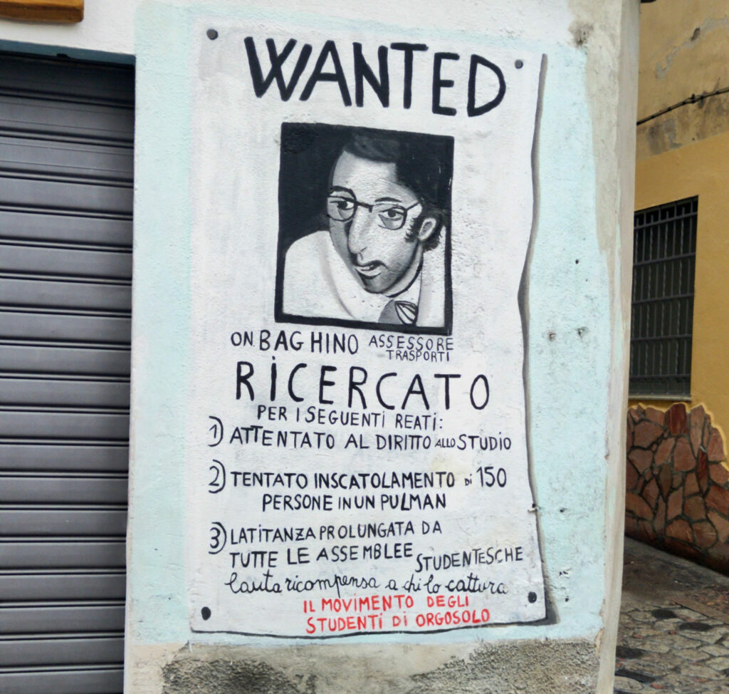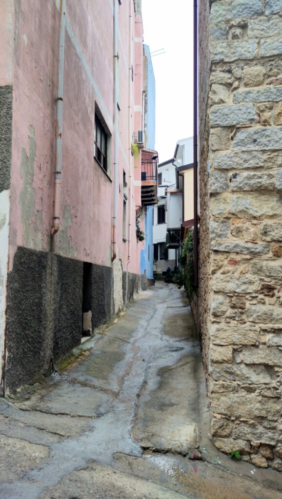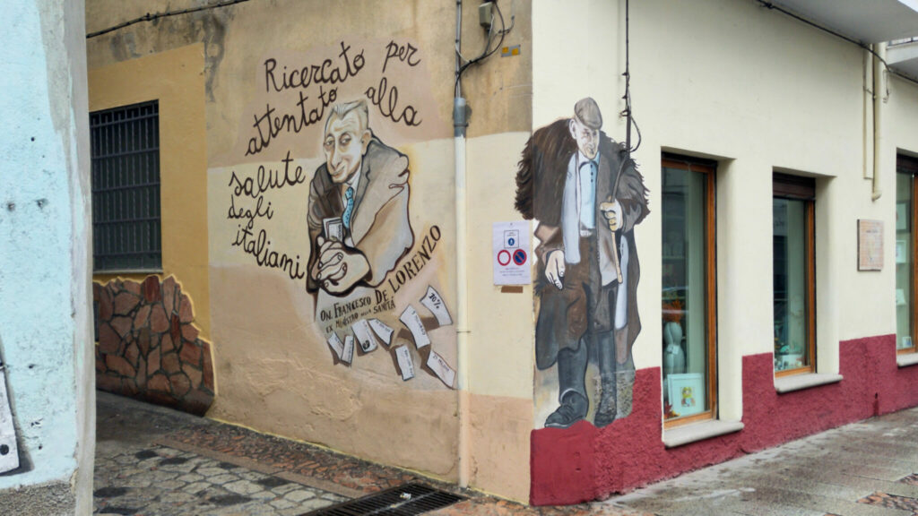 Weiter geht’s den Berg hoch. Bis auf ein paar Kühe und jede Menge Serpentinen wenig zu erzählen. Die angeblich so praktischen Parkplätze in Orgosolo erweisen sich jedoch als schwierig zu erreichen durch winzige, steile Straßen – und voll. Kurz entschlossen parken wir außerhalb und gehen zu Fuß – so groß ist der Ort ja gar nicht.