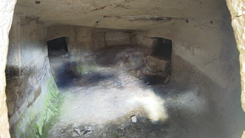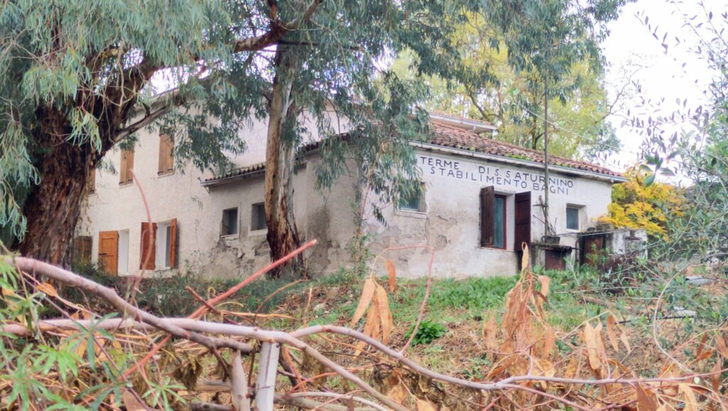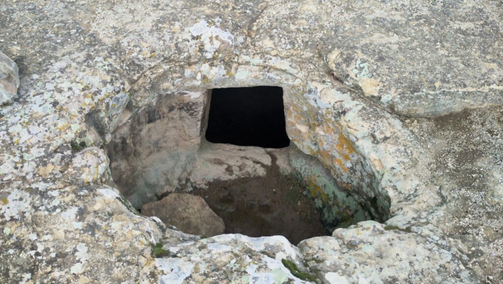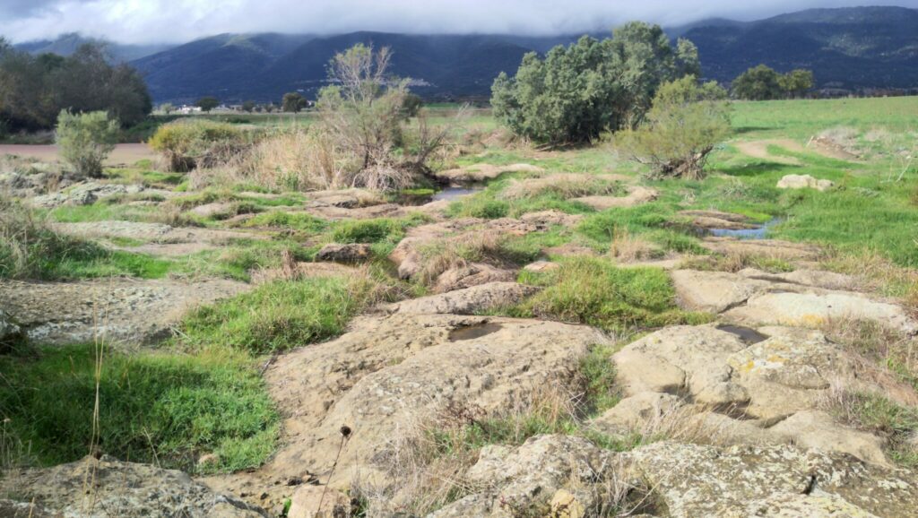 Soweit so fein. Anne mit ihrem Faible für Lost Places muss aber noch los (allerdings allein), das verlassene Schwimmbad erkunden (anscheinend einmal für olympische Spiele gebaut) und den Domus de Jamas il Saturnino finden – über Stock und Stein, weil der offizielle Weg durch ein Tor versperrt ist, wie so vieles hier.