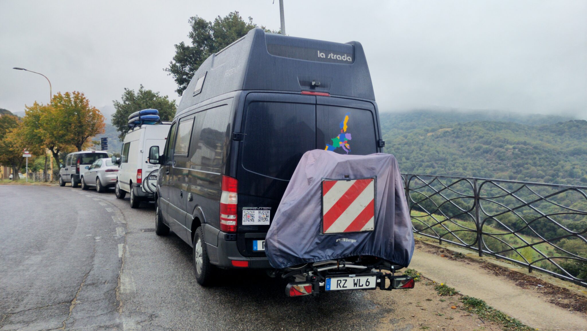 Lange müssen wir nach dem Becken nicht suchen. Auf dem Platz, den wir für so einsam hielten, halten ständig irgendwelche Italiener, die baden wollen, unter anderem zwei Wohnmobile mit italienischen Großfamilien drin – schon wissen wir, wo wir am nächsten Tag hinwollen. Gegen Abend lässt der Regen nach und wir haben eine ruhige Nacht.