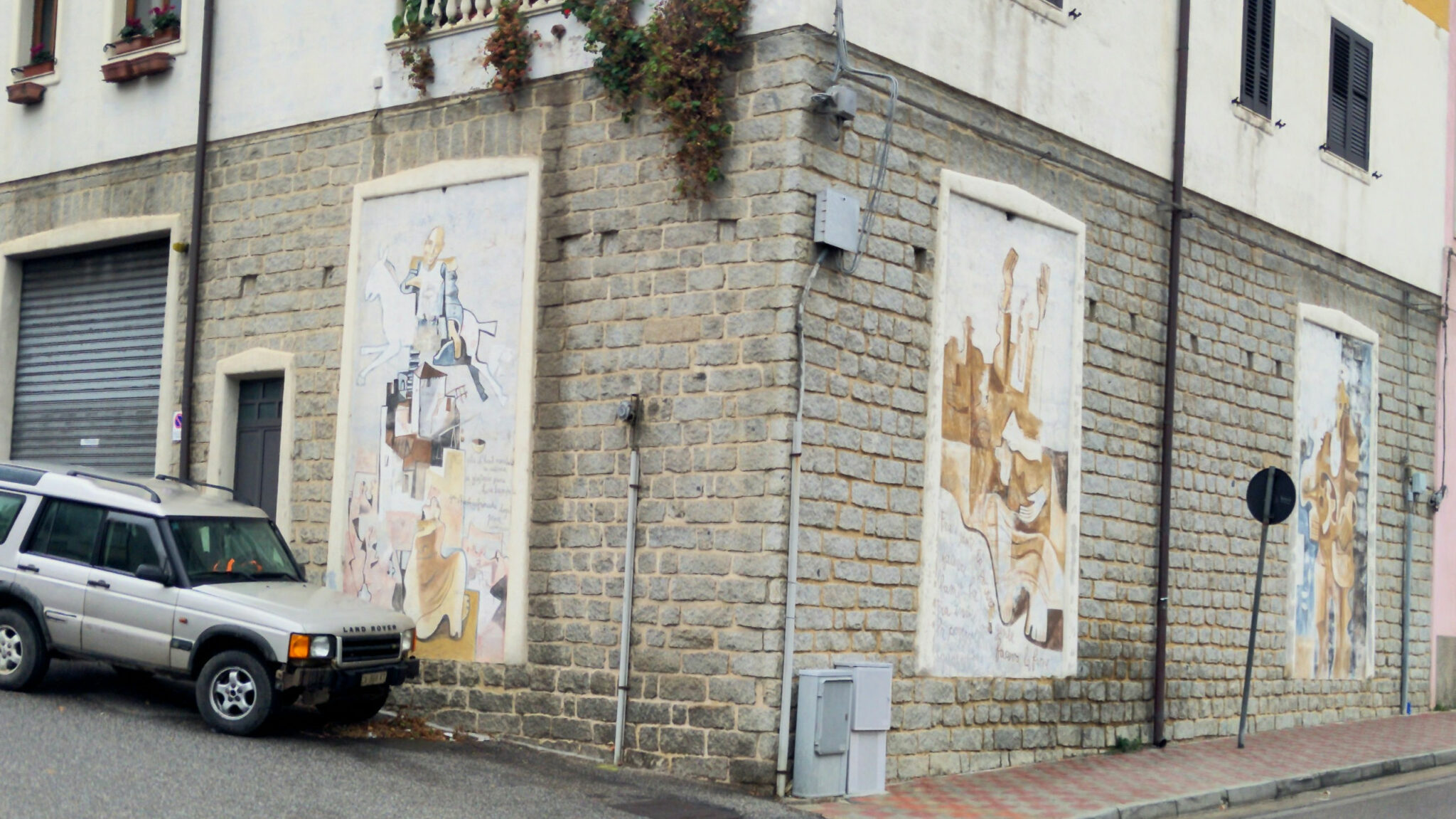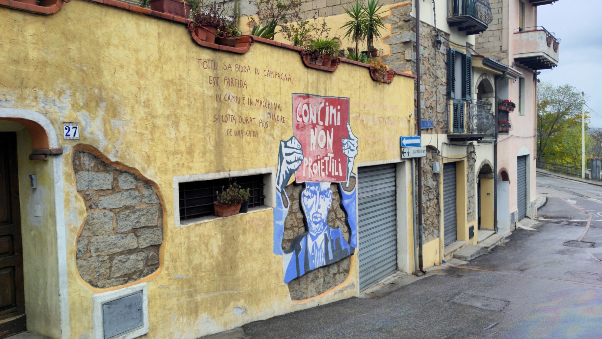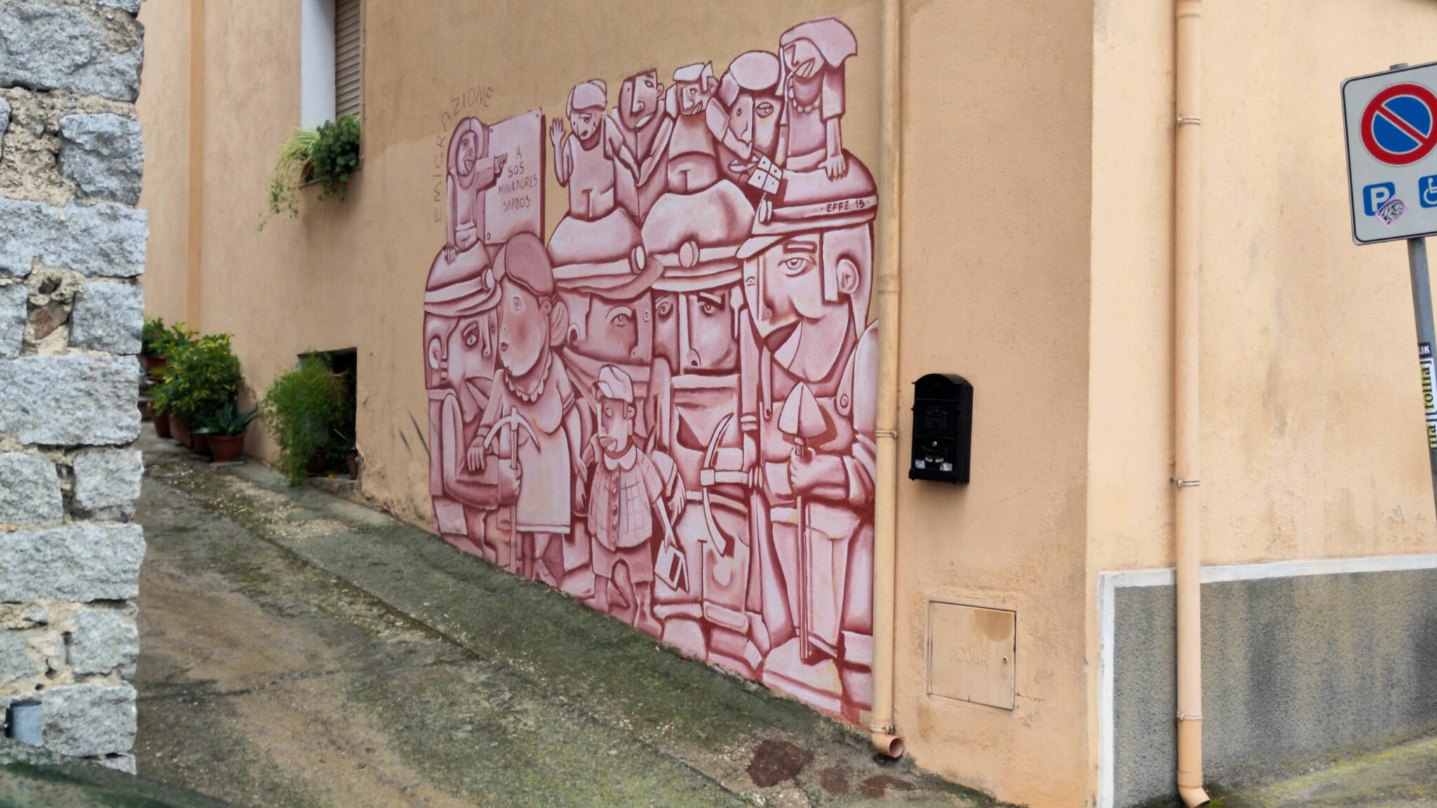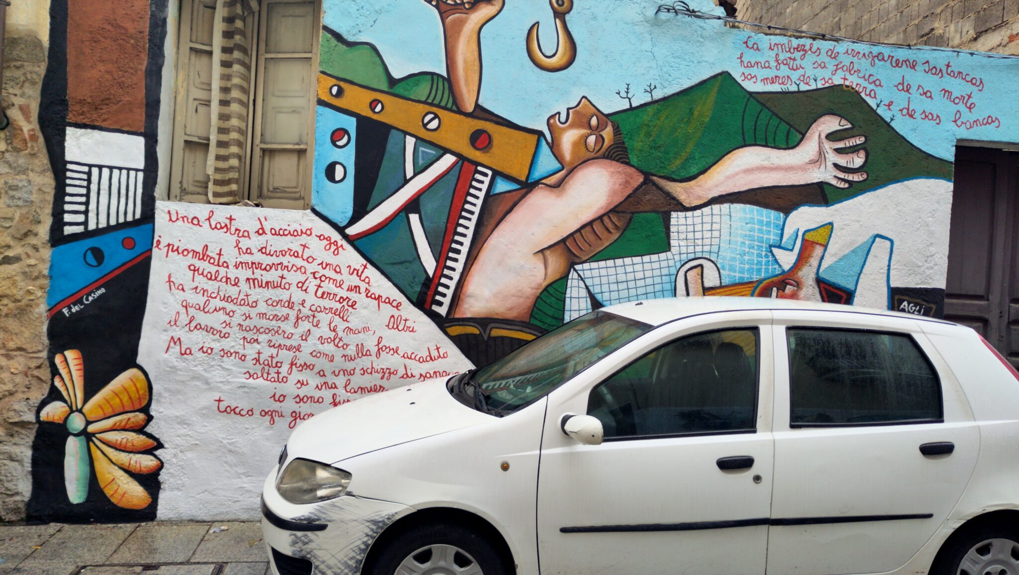 Weiter geht’s den Berg hoch. Bis auf ein paar Kühe und jede Menge Serpentinen wenig zu erzählen. Die angeblich so praktischen Parkplätze in Orgosolo erweisen sich jedoch als schwierig zu erreichen durch winzige, steile Straßen – und voll. Kurz entschlossen parken wir außerhalb und gehen zu Fuß – so groß ist der Ort ja gar nicht.