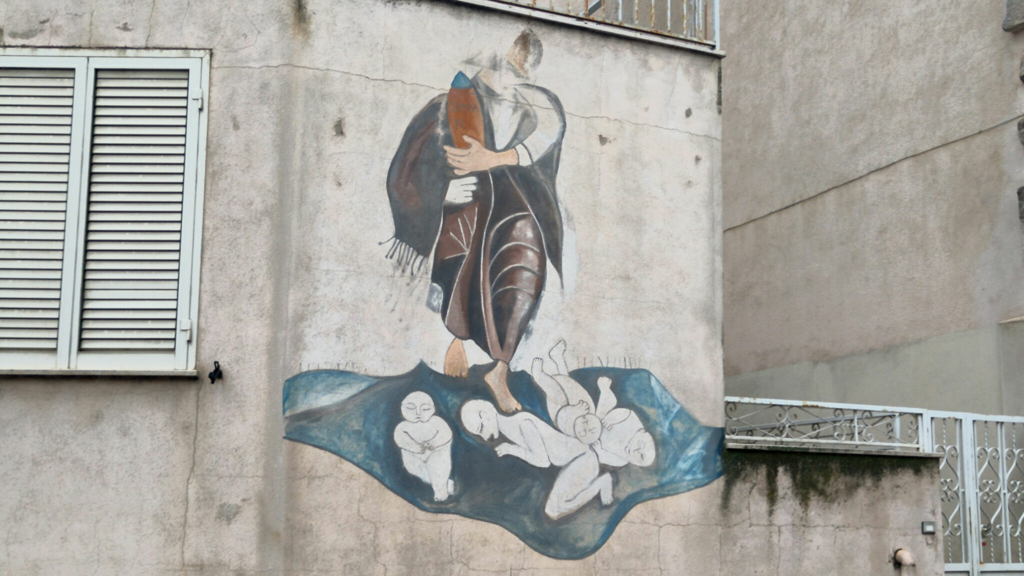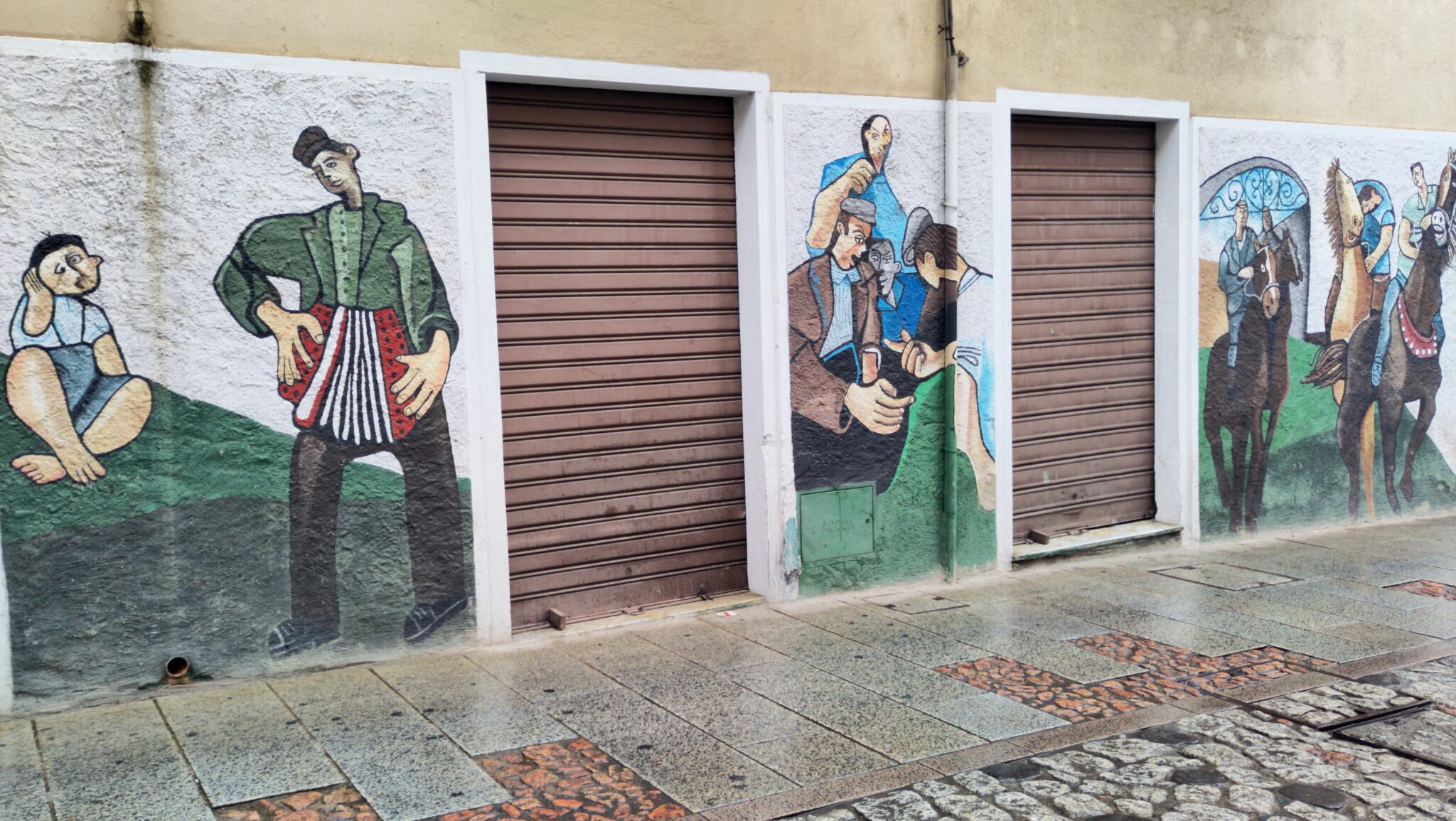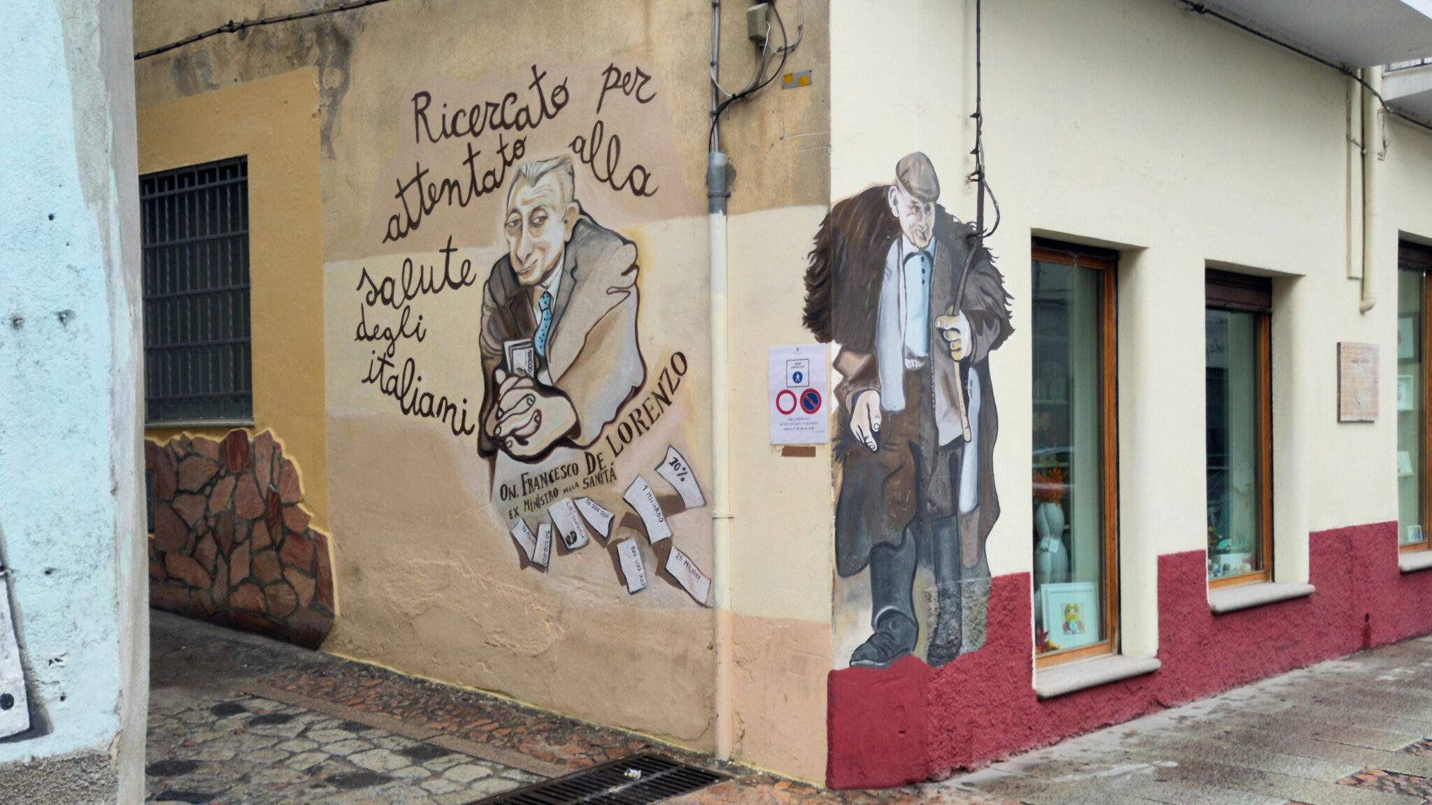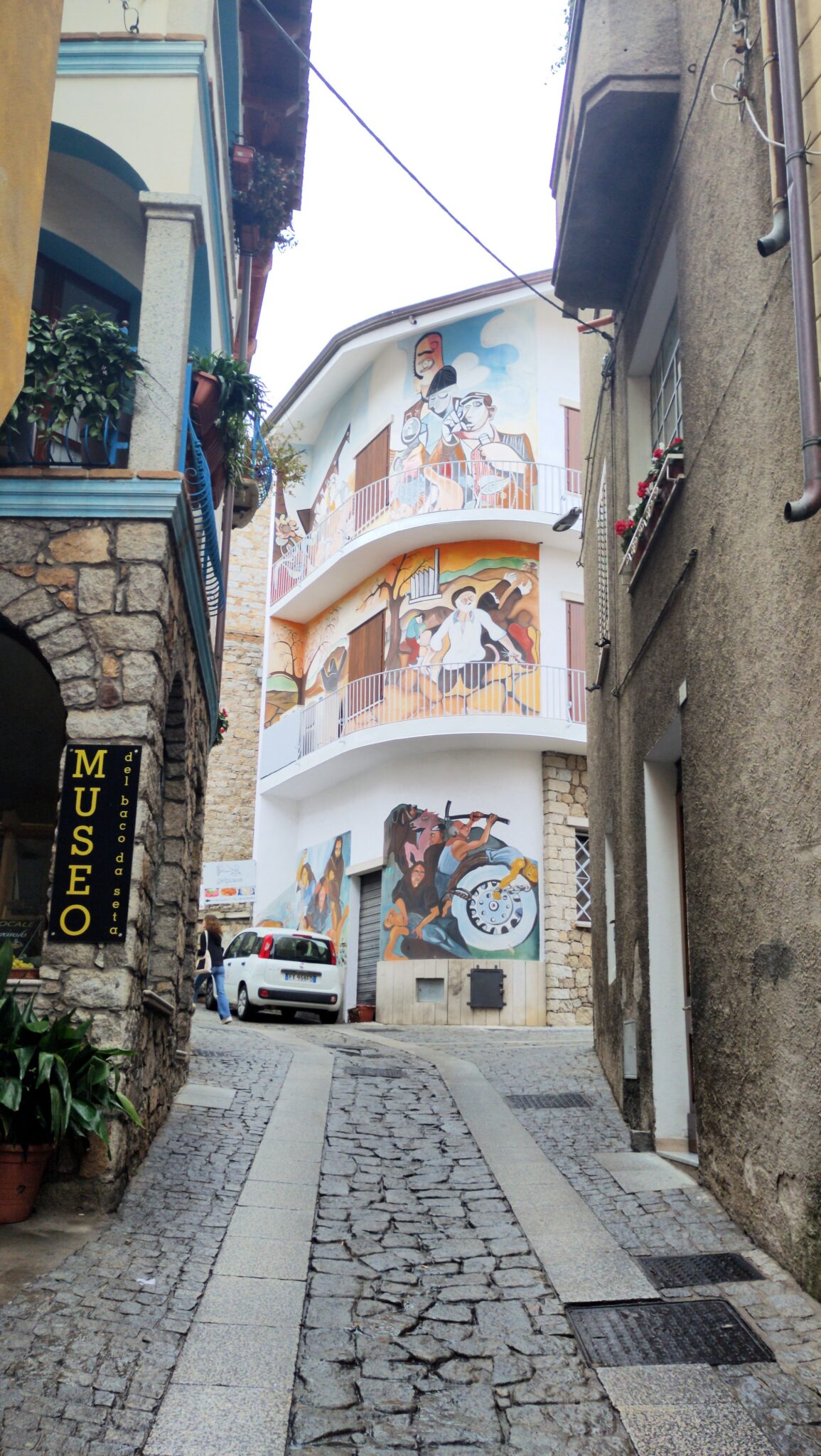 Weiter geht’s den Berg hoch. Bis auf ein paar Kühe und jede Menge Serpentinen wenig zu erzählen. Die angeblich so praktischen Parkplätze in Orgosolo erweisen sich jedoch als schwierig zu erreichen durch winzige, steile Straßen – und voll. Kurz entschlossen parken wir außerhalb und gehen zu Fuß – so groß ist der Ort ja gar nicht.