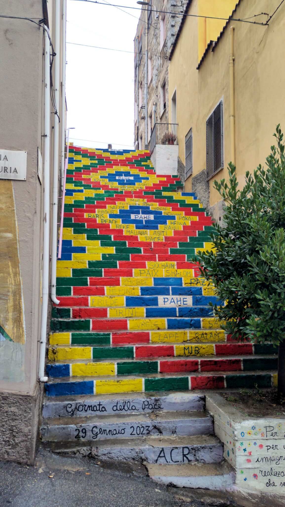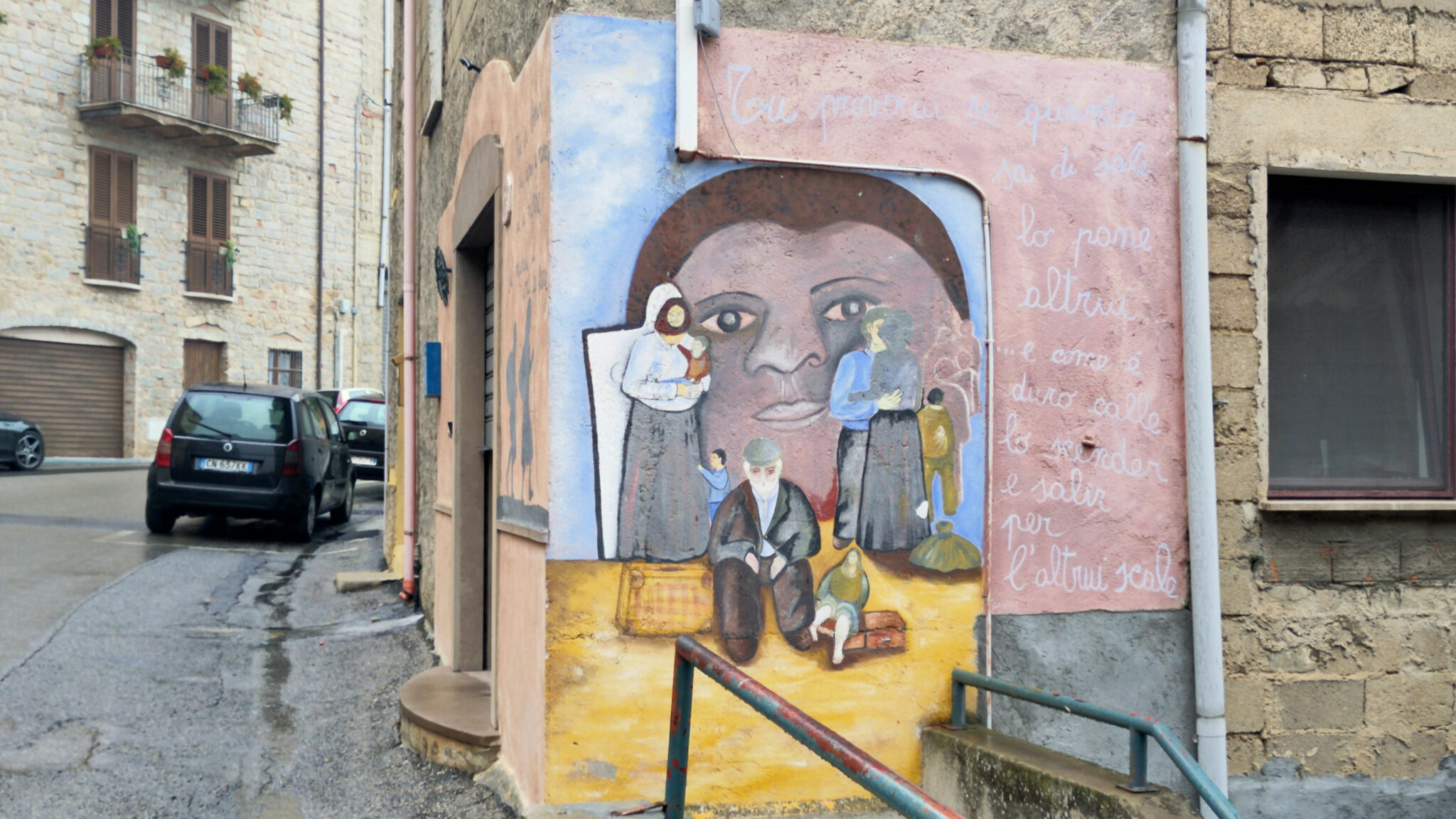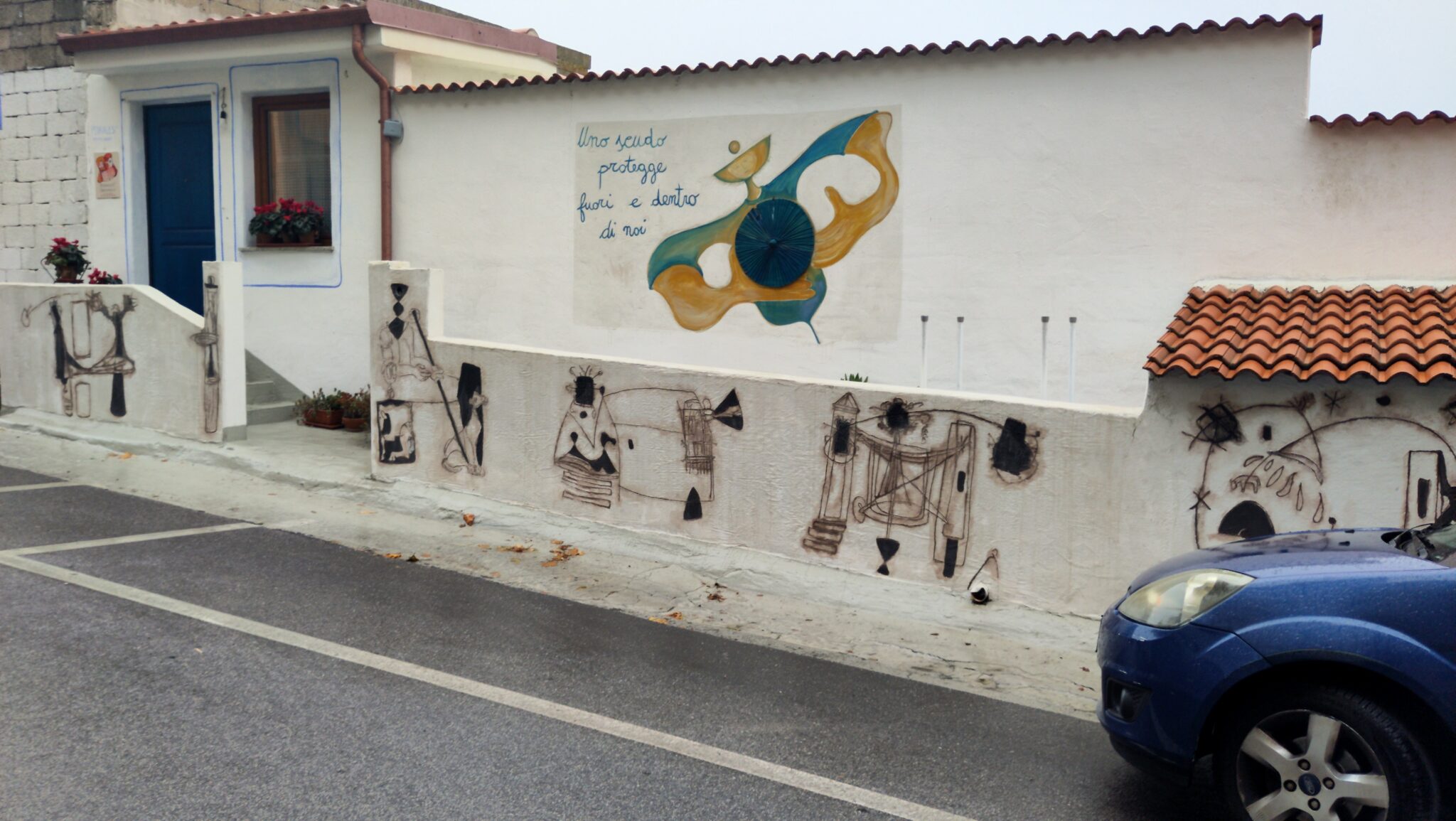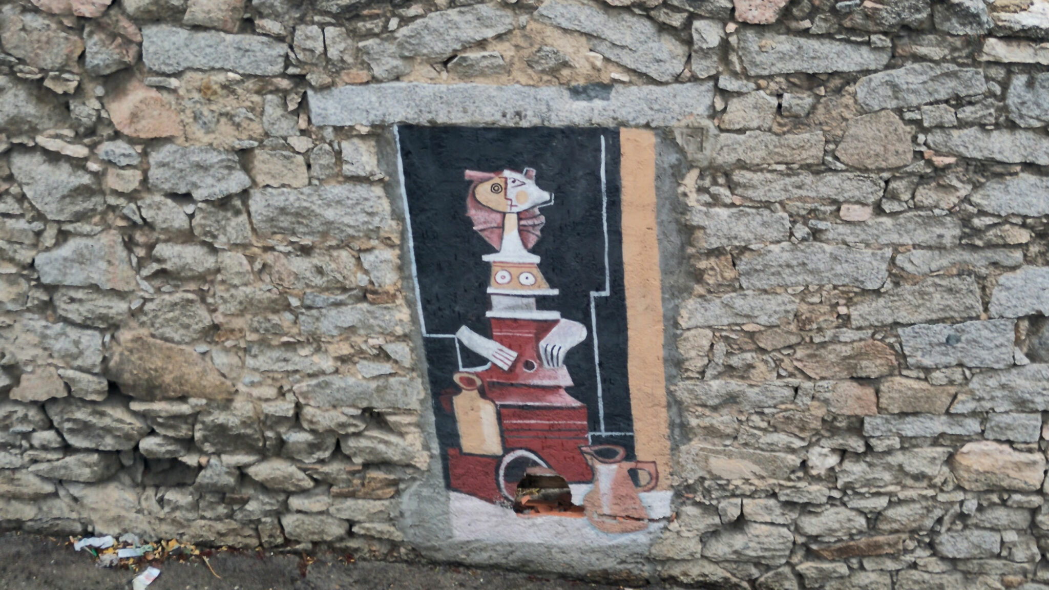 Weiter geht’s den Berg hoch. Bis auf ein paar Kühe und jede Menge Serpentinen wenig zu erzählen. Die angeblich so praktischen Parkplätze in Orgosolo erweisen sich jedoch als schwierig zu erreichen durch winzige, steile Straßen – und voll. Kurz entschlossen parken wir außerhalb und gehen zu Fuß – so groß ist der Ort ja gar nicht.