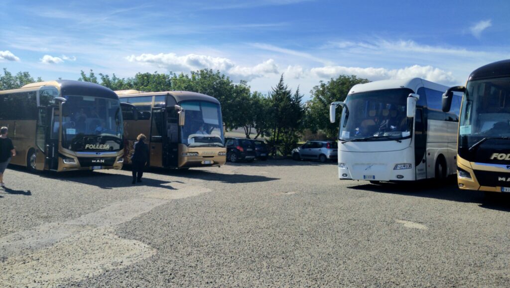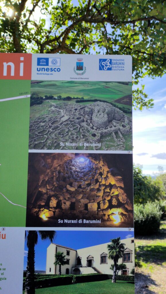Weiter geht’s, ein Stück nach Süden nach Barumini, Nuraghi gucken. Wieder mal läuft einiges anders als gedacht. Der Stellplatz in Truili, ganz in der Nähe, erweist sich als Ruine. Hier können wir nicht bleiben. Also fahren wir direkt zum Nuraghi-Platz. Das Ding ist allerdings Weltkulturerbe, das wussten wir nicht. Hier ist alles irre voll. Busse, die Massen an Leuten abwerfen. Der Eintritt kostet 15€, eine Führung ist obligatorisch (aus Sicherheitsgründen,.soso..). Aus der Ferne sehen wir, wie sich die Leute drängeln. Nach kurzer Beratung geben wir das auf und fahren weiter, das bringt uns nichts.