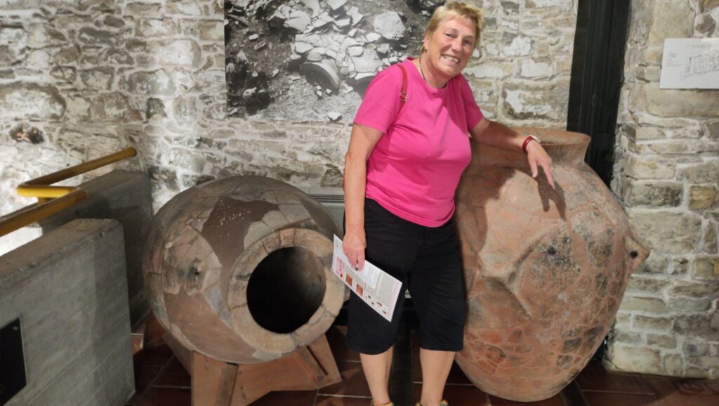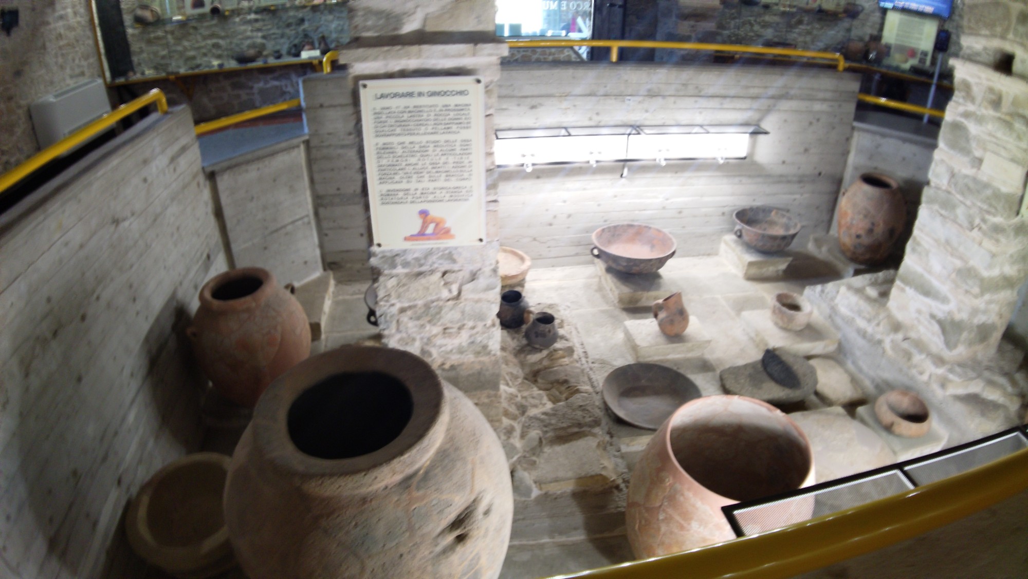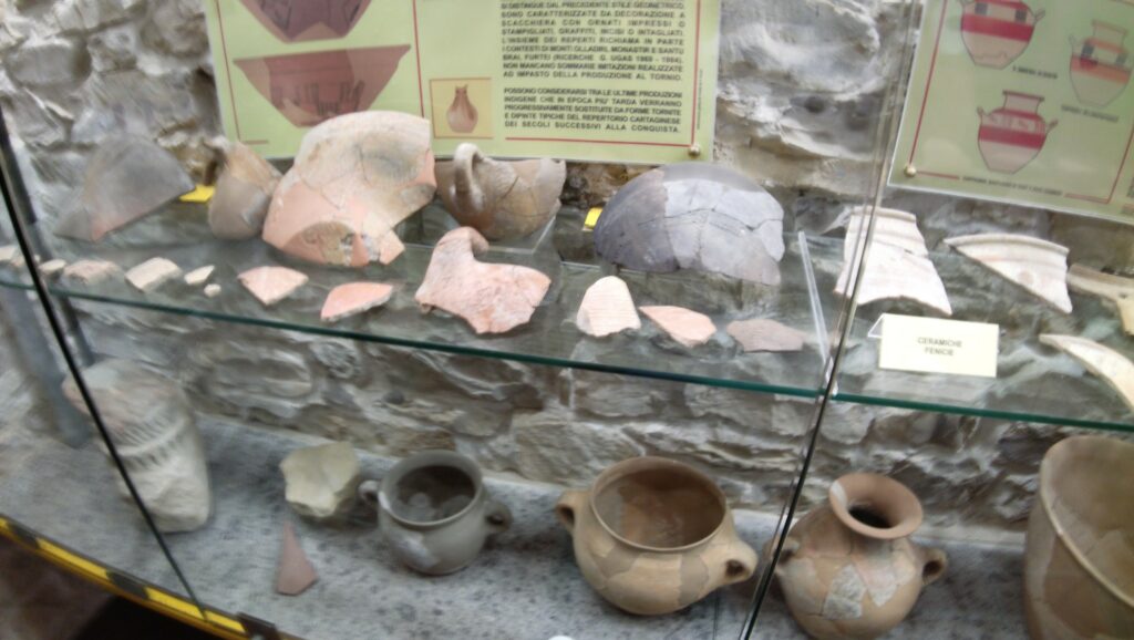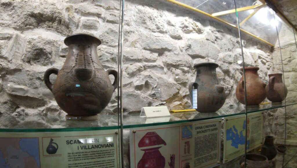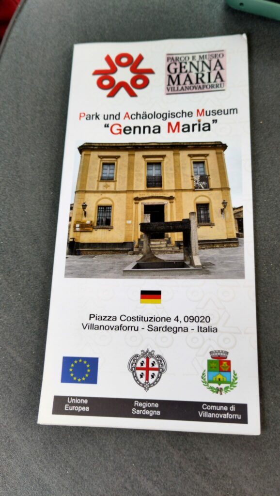 Eine richtig gute Entscheidung, wie sich bald zeigt. Der kleine Ort Villanovaforru, wo wir nun landen, ist super friedlich und angenehm, wir fühlen uns direkt wohl. In der kleinen Bar treffen wir einen Gastarbeitet, der 16 Jahre in Dorsten gelebt hat und bekommen einen sehr gehaltvollen Limoncello Spritz und Pizzette dazu (dann doch einen halben Liter für gerade mal 5€ je Nase). Leicht angeschwipst besuchen wir das archäologische Museum, das gerade öffnet, und bekommen für 4€ pro Person all das, was wir in Barumini vermisst haben: ganz viel Raum und Ruhe, um die Zeugnisse der nuraghischen Kultur würdigen zu können. Dazu einen super engagierten Führer. Faszinierend, was die 1000 v.Chr. schon konnten!