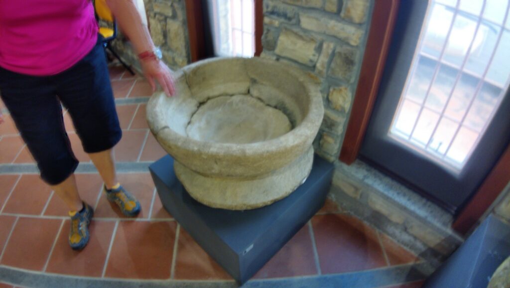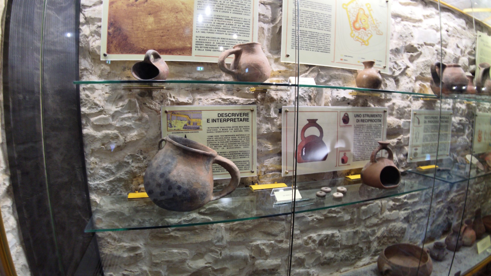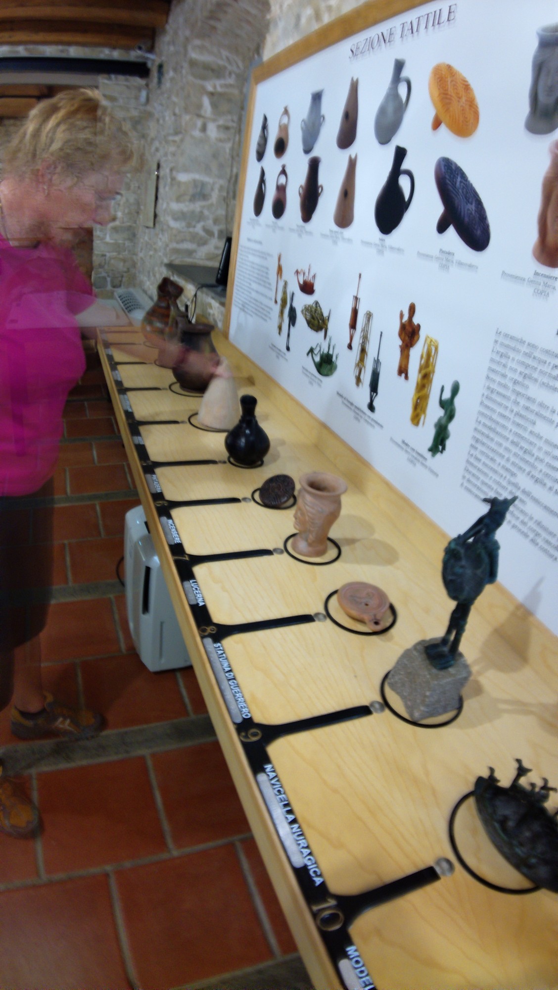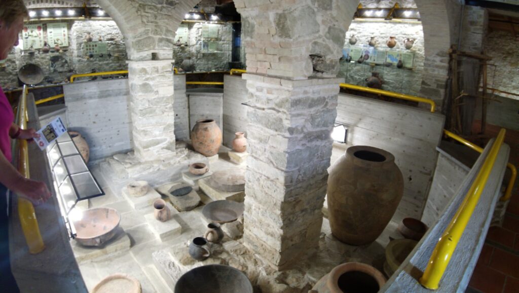 Eine richtig gute Entscheidung, wie sich bald zeigt. Der kleine Ort Villanovaforru, wo wir nun landen, ist super friedlich und angenehm, wir fühlen uns direkt wohl. In der kleinen Bar treffen wir einen Gastarbeitet, der 16 Jahre in Dorsten gelebt hat und bekommen einen sehr gehaltvollen Limoncello Spritz und Pizzette dazu (dann doch einen halben Liter für gerade mal 5€ je Nase). Leicht angeschwipst besuchen wir das archäologische Museum, das gerade öffnet, und bekommen für 4€ pro Person all das, was wir in Barumini vermisst haben: ganz viel Raum und Ruhe, um die Zeugnisse der nuraghischen Kultur würdigen zu können. Dazu einen super engagierten Führer. Faszinierend, was die 1000 v.Chr. schon konnten!