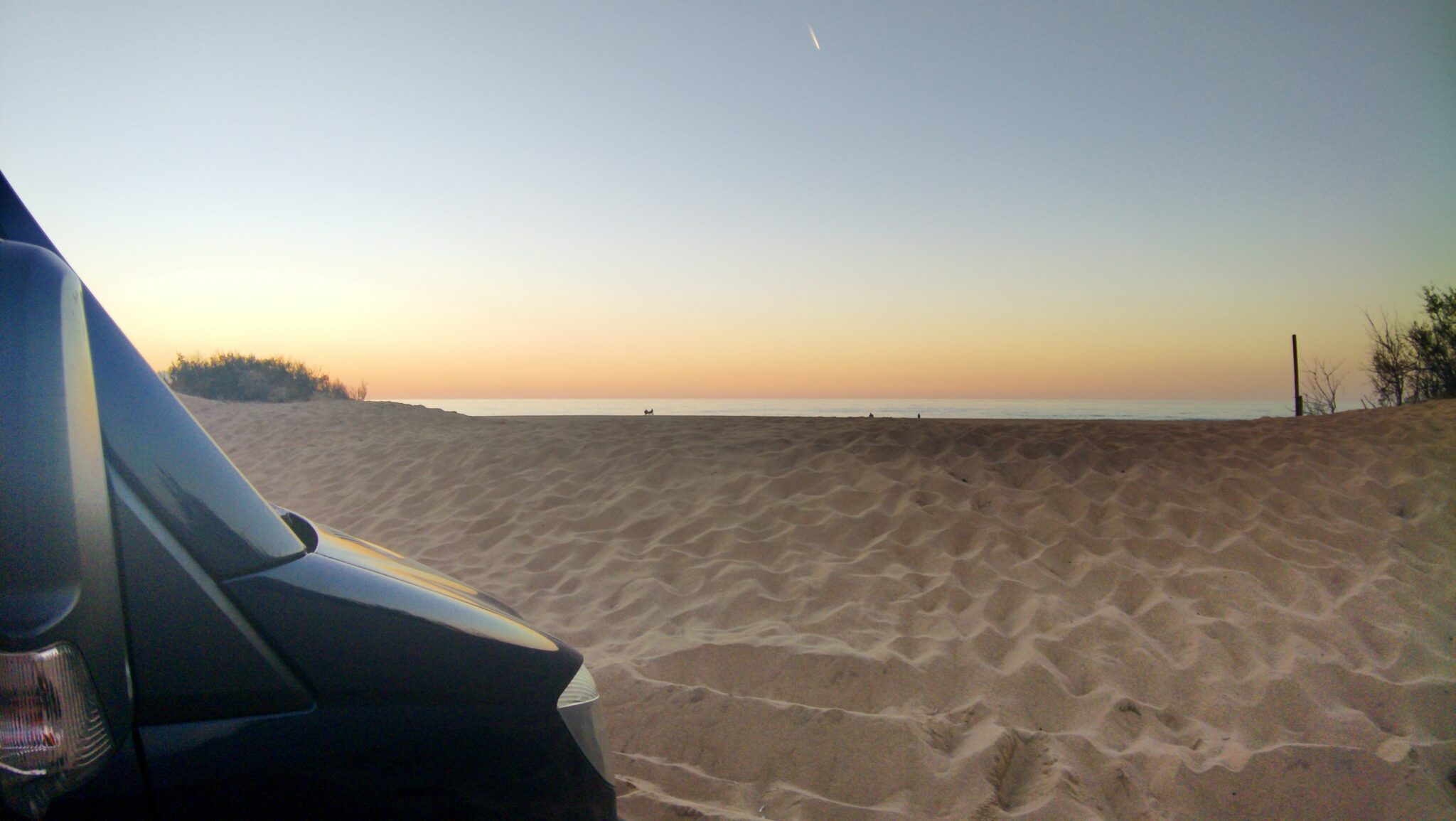 Am Dienstag morgen sind es draußen gerade einmal 12°C, wir haben das erste mal seit langem die Heizung an. Von den Brechern mit dem starken Wind ist das Auto mit einer Salz-Sand-Kruste überzogen.