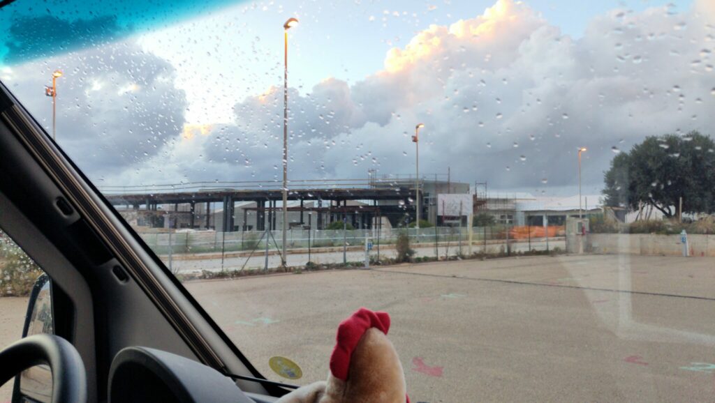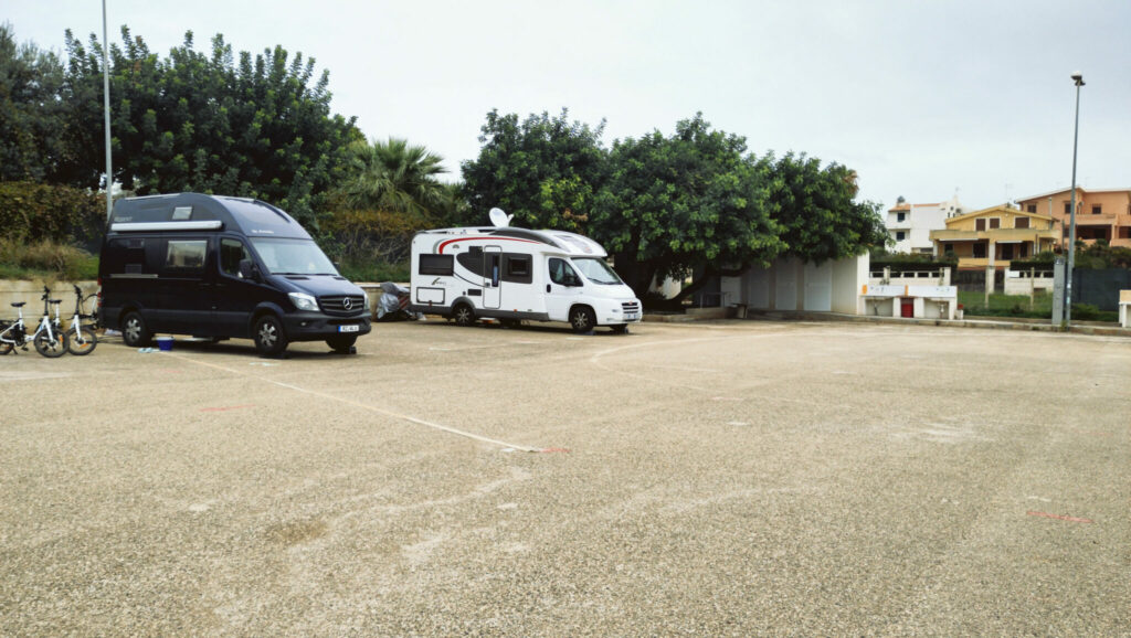 Von hier ist es nur noch eine kurze Distanz bis Marina di Ragusa. Der Platz ist nüchtern und laut, aber halt eben, flach und es gibt Strom und Entsorgung – gut für die anstehenden Arbeitstage. Wegen des schlechten Wetters verschieben wir die Erkundung des Orts auf morgen.