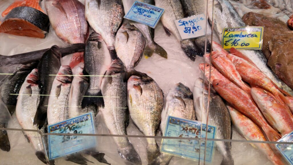 Abends noch Fisch kaufen, denn morgen wird gegrillt. Diese Fischauswahl wird uns fehlen in Deutschland.