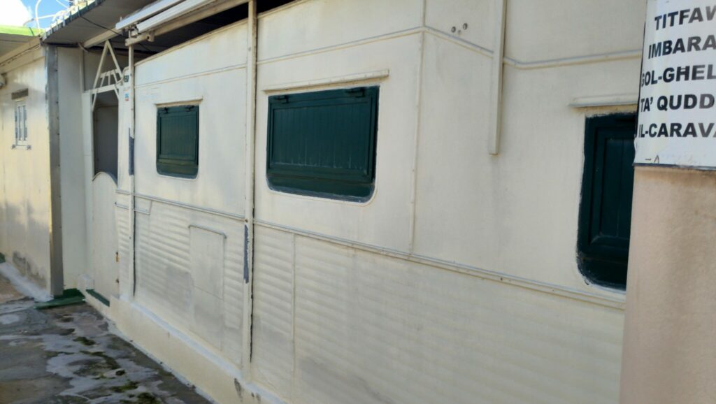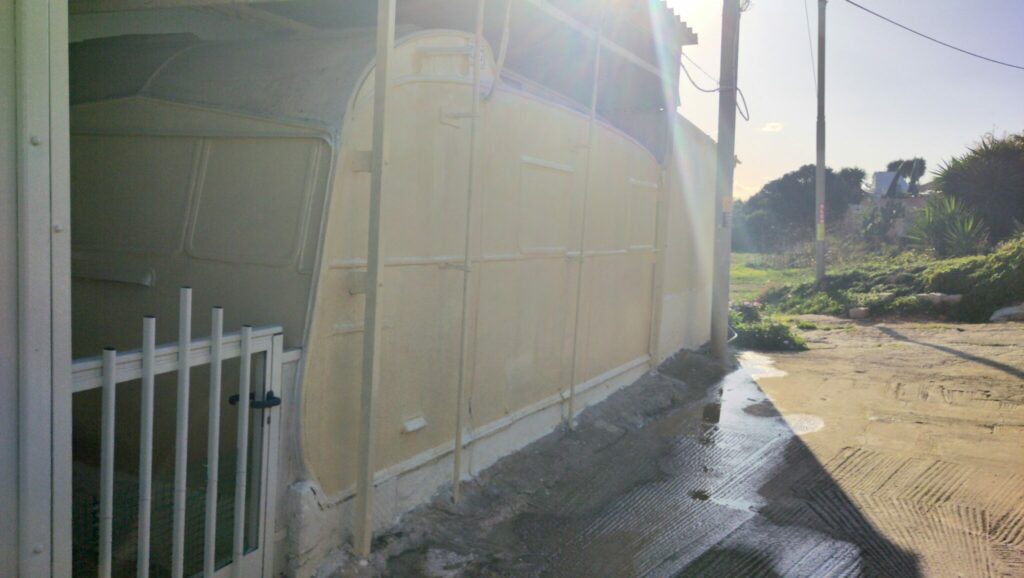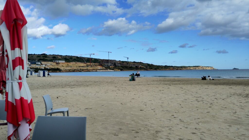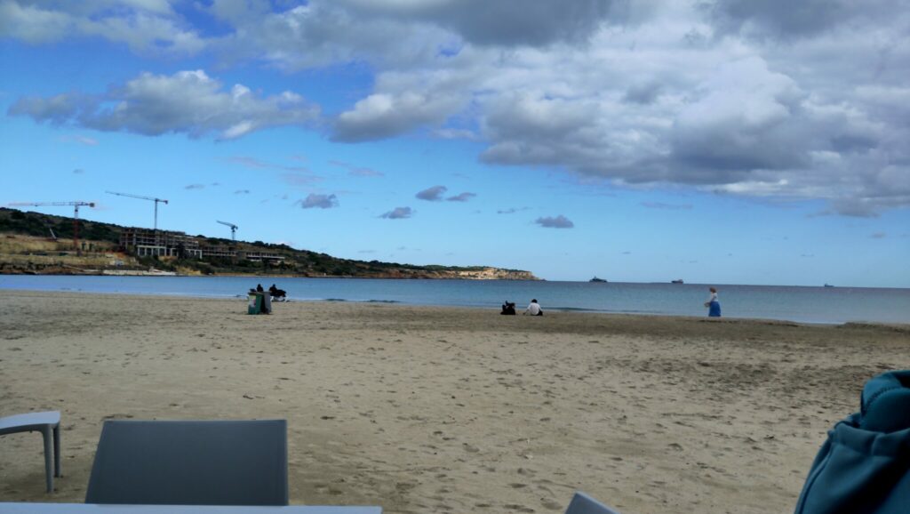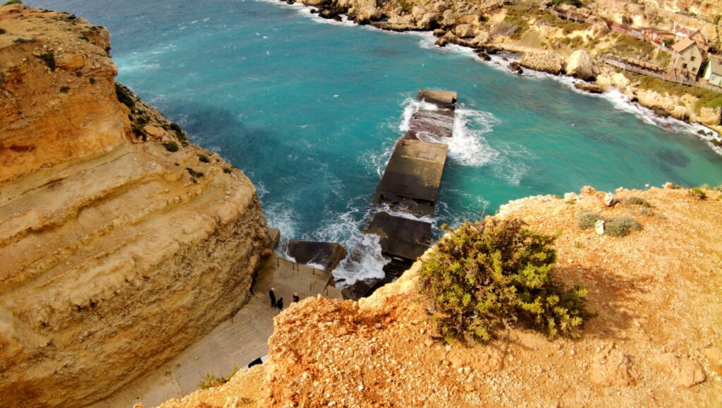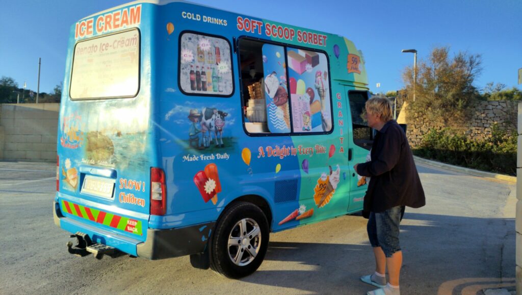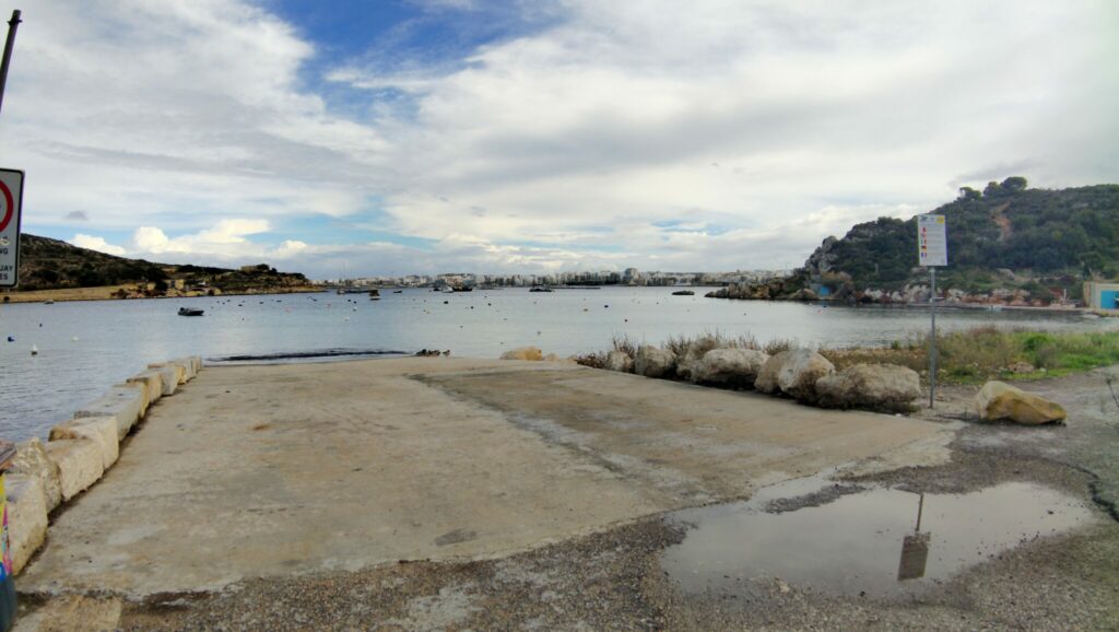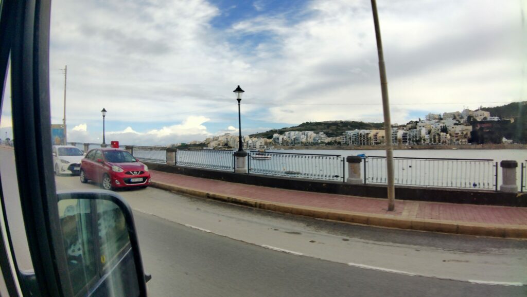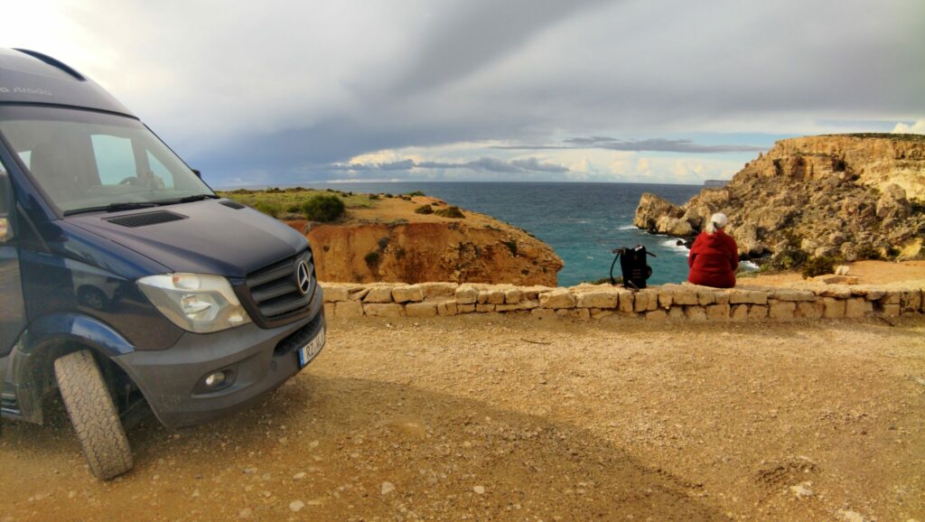 Danach fahren wir uns Popeye Village ansehen, eigentlich eine kurze Strecke, bei dem Verkehr aber durchaus eine spannende Tour. Unterwegs halten wir spontan in der Mistra-Bucht (Il-Bajja-tal-Mistra), wo wir das erste mal maltesische Campingfahrzeuge sehen – es gibt sie also doch.