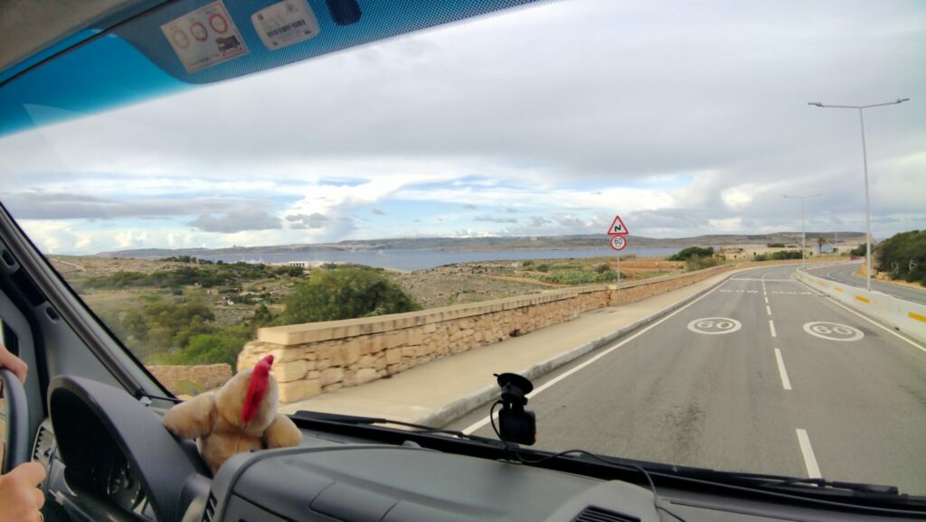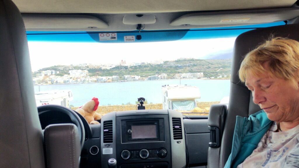 Weiter geht’s. Wir besichtigen noch kurz die Gozo-Fähre, frau will ja wissen, was uns so erwartet. Schaut unproblematisch aus. Dann auf den Platz. Anne muss erstmal schlafen, weil sie schon wieder erkältet ist. Andrea macht derweil das Auto von innen sauber, das ist evtl. ein ganz bisschen schlammig.