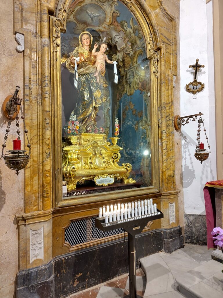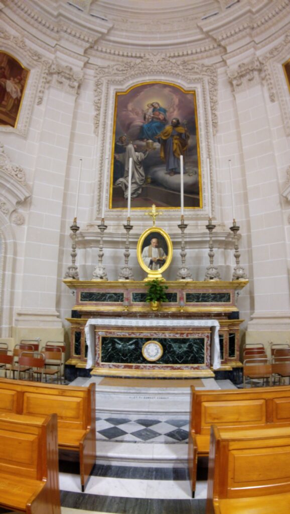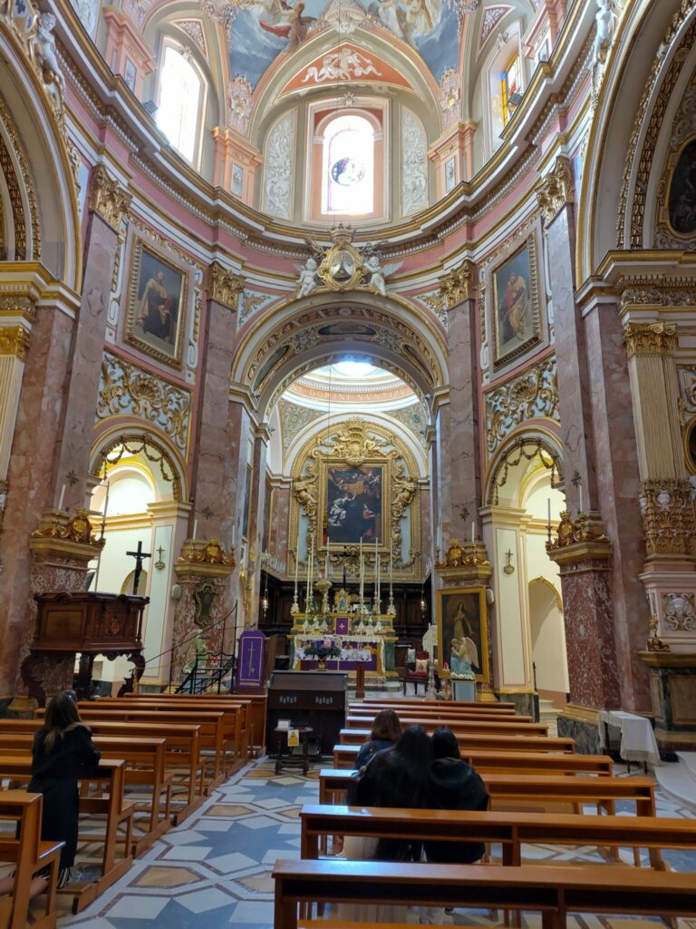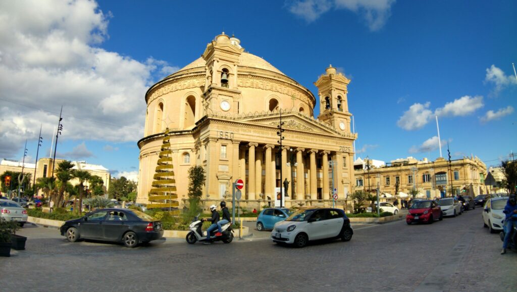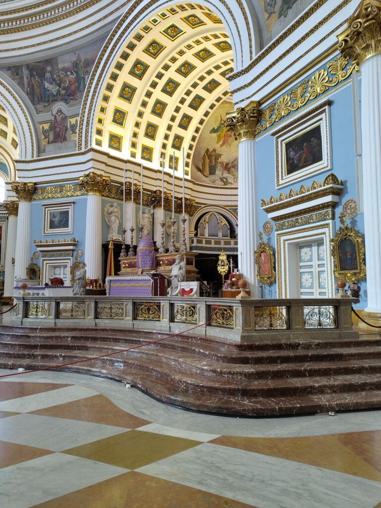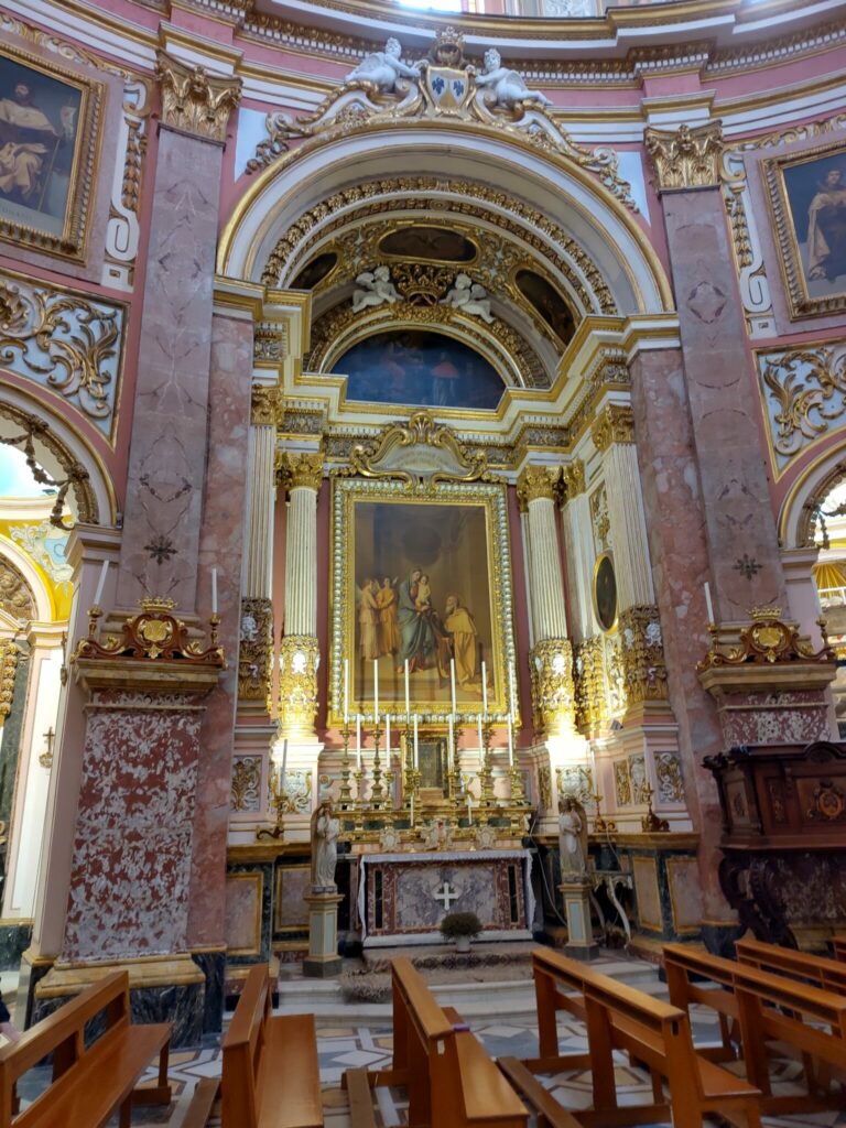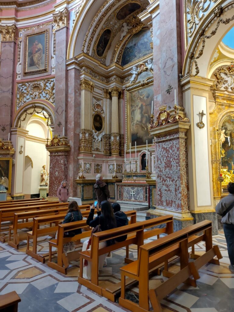 Nachdem wir beide fertig sind, entscheiden wir uns, nach Mellieħa zu fahren, also genau den Ort, den wir die ganze Zeit im Blick haben. Wegen irrem Verkehr bestellen wir uns einen Uber – eine richtig gute Idee. In wenigen Minuten und für unter 6€ sind wir in der Stadt. Rad fahren hätten wir nicht wollen und mit dem Bus sah das auch abenteuerlich aus. So haben wir es einfach und schauen uns die beeindruckende Kirche an – vor allem aber die zauberhafte Kapelle. So etwas schönes haben wir lange nicht gesehen.