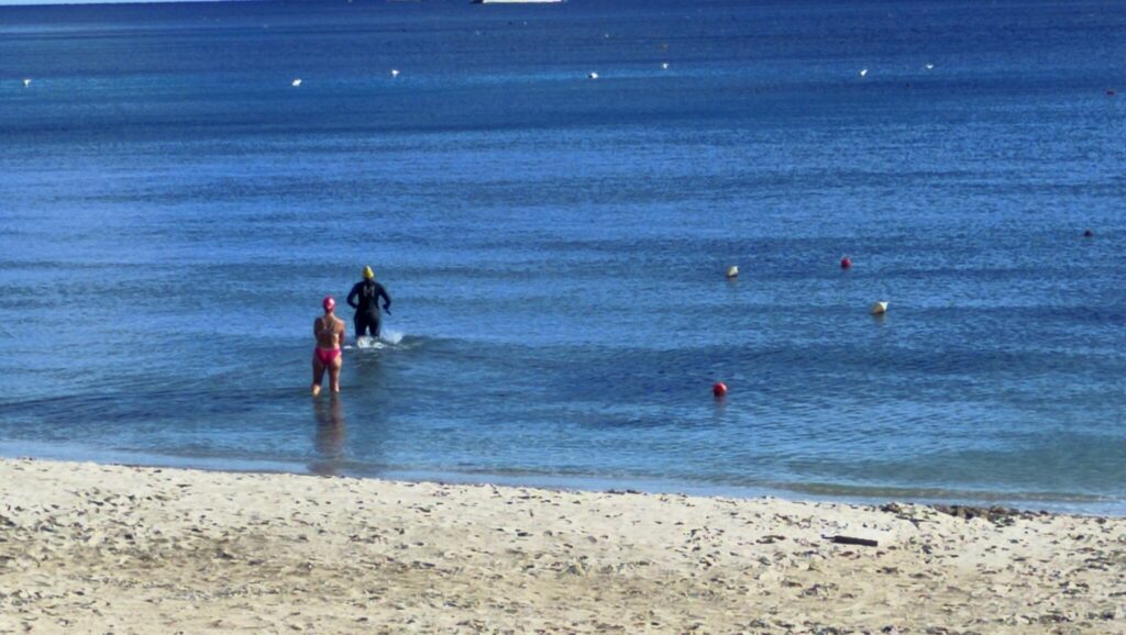 Am Sonnabend wollen wir auf Stadt-Tour. Wir erkunden die direkte Umgebung und warten auf den Bus. Die Bucht ist schick, vermutlich aber nur im Winter erträglich. Ups, da baden welche bei 14°C.