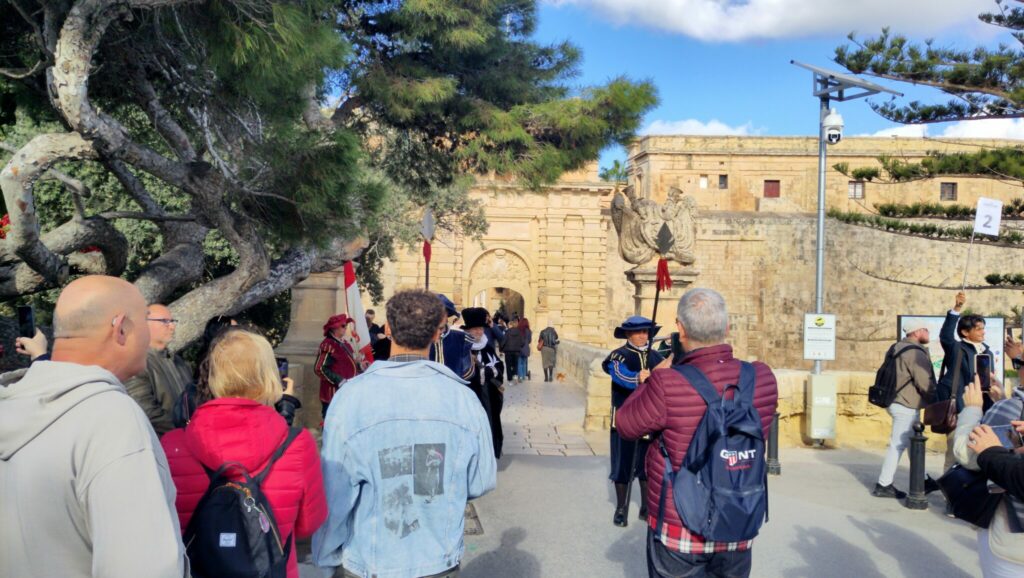 Der kommt prompt und bringt uns ohne Probleme hin. Zuerst einmal schauen wir Mdina, die alte Festung. Ein unbeschreiblicher Tourimagnet, selbst im Winter. Wie das im Sommer ist, mögen wir uns nicht vorstellen. Aber es ist halt auch schon echt hübsch, man kann die Reisegruppen verstehen (heute in der Mehrheit Franzosen)