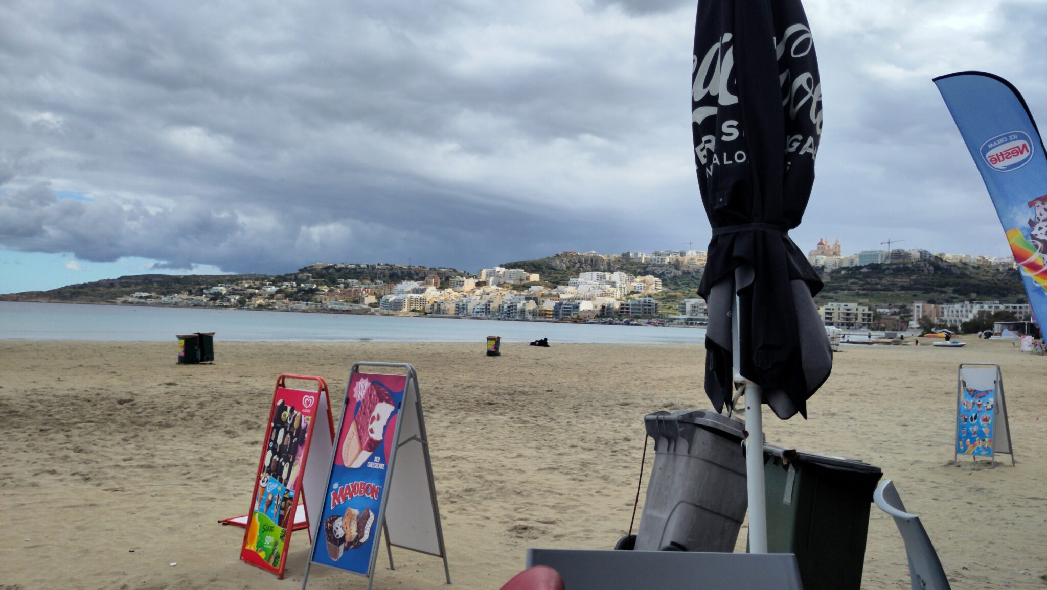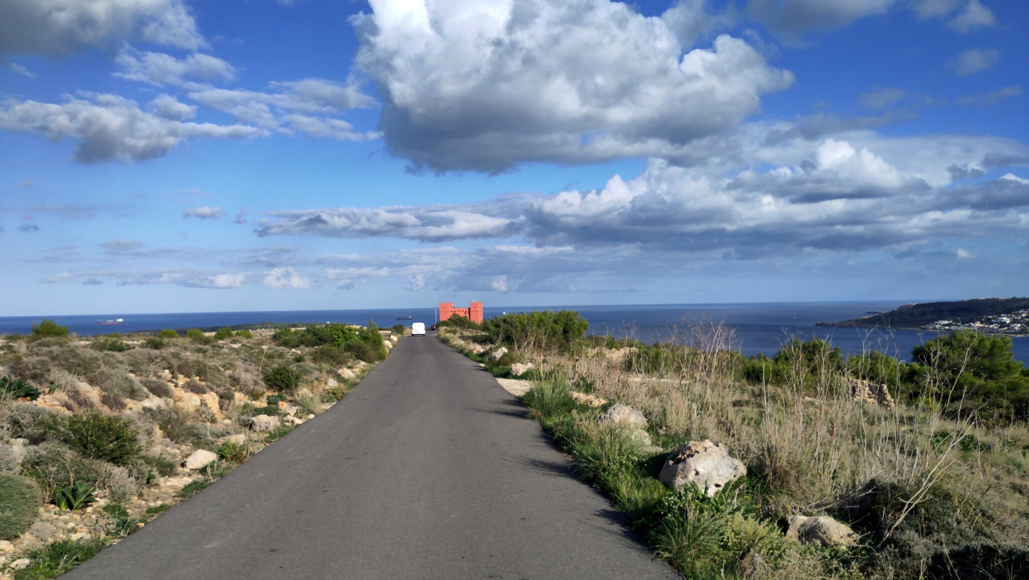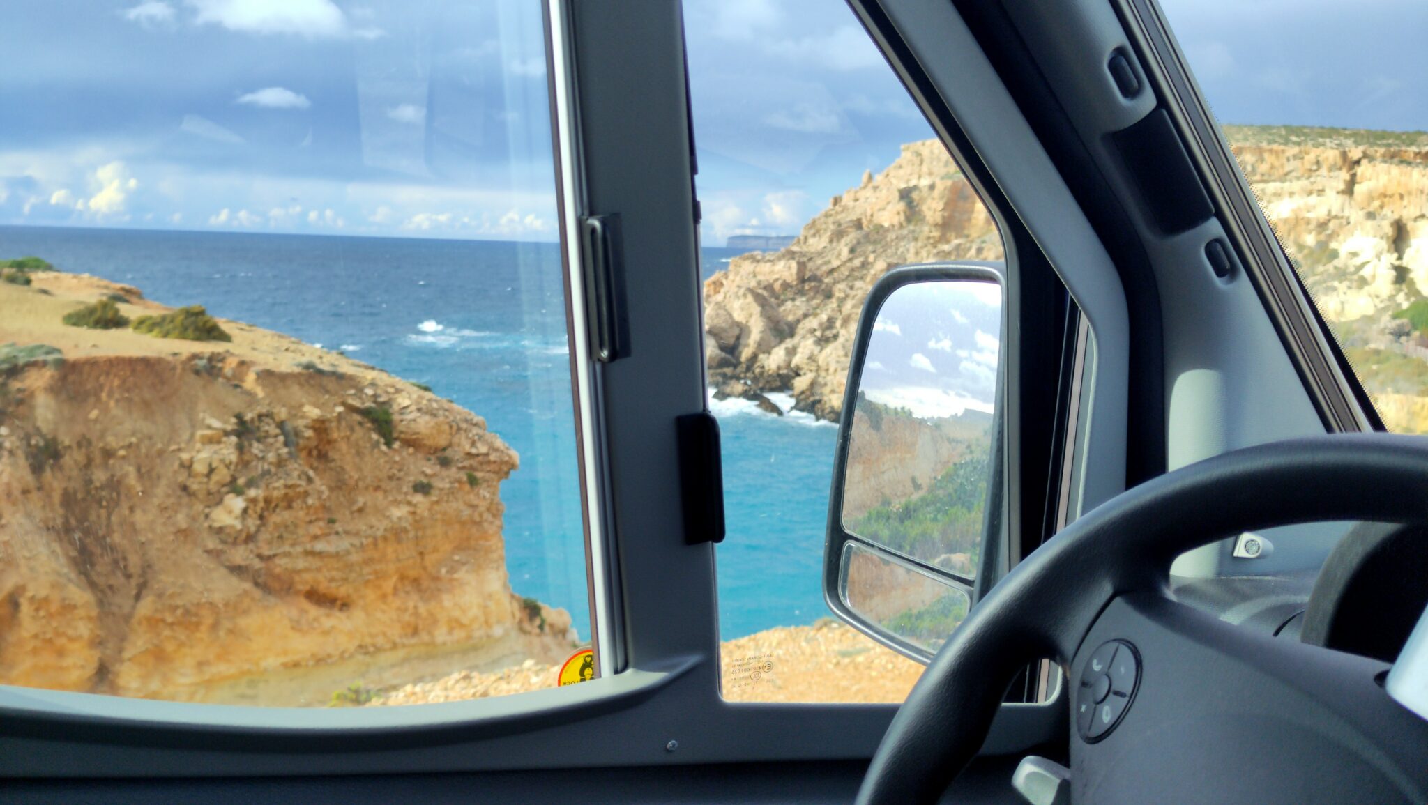 Danach fahren wir uns Popeye Village ansehen, eigentlich eine kurze Strecke, bei dem Verkehr aber durchaus eine spannende Tour. Unterwegs halten wir spontan in der Mistra-Bucht (Il-Bajja-tal-Mistra), wo wir das erste mal maltesische Campingfahrzeuge sehen – es gibt sie also doch.