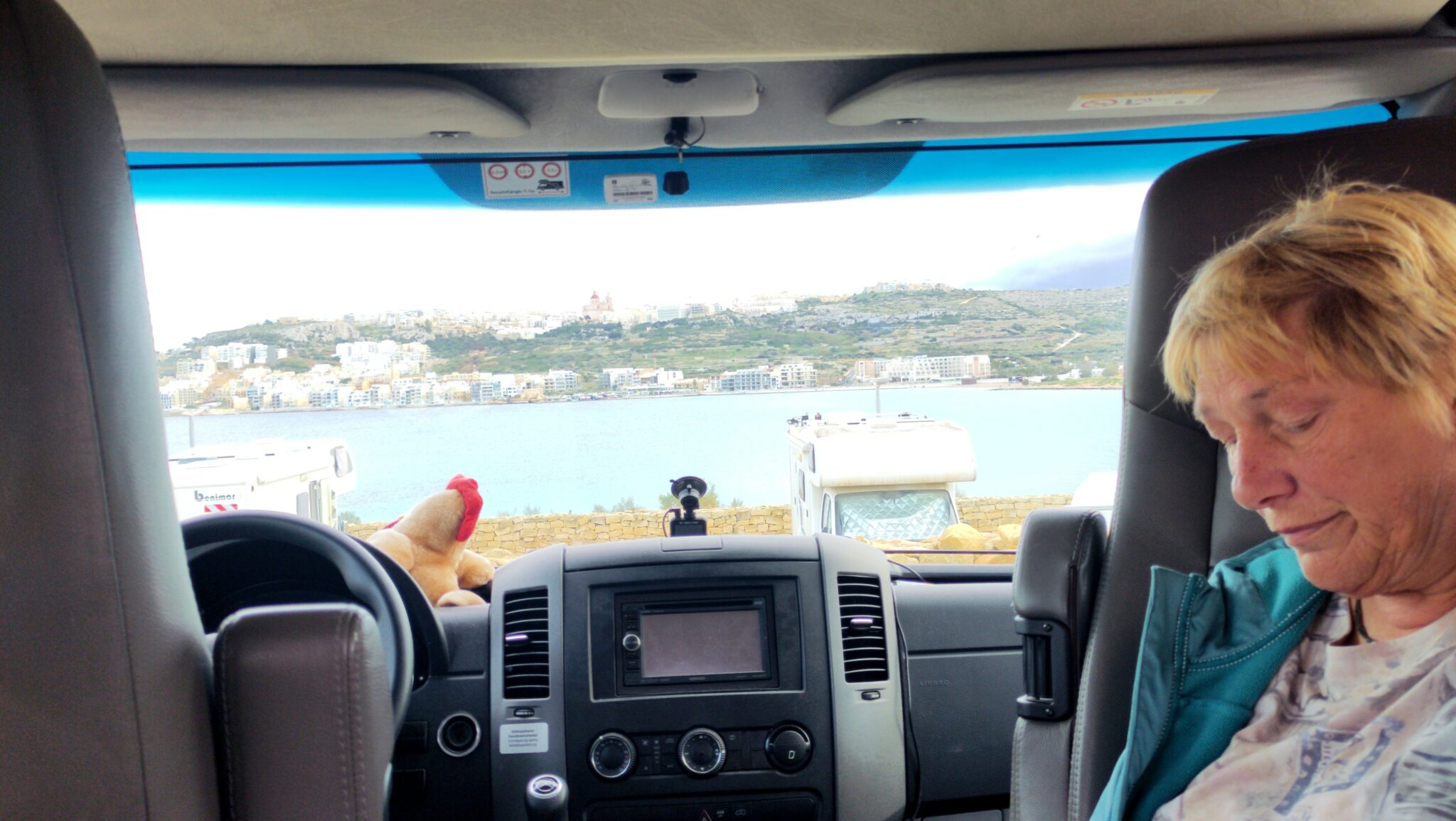 Weiter geht’s. Wir besichtigen noch kurz die Gozo-Fähre, frau will ja wissen, was uns so erwartet. Schaut unproblematisch aus. Dann auf den Platz. Anne muss erstmal schlafen, weil sie schon wieder erkältet ist. Andrea macht derweil das Auto von innen sauber, das ist evtl. ein ganz bisschen schlammig.