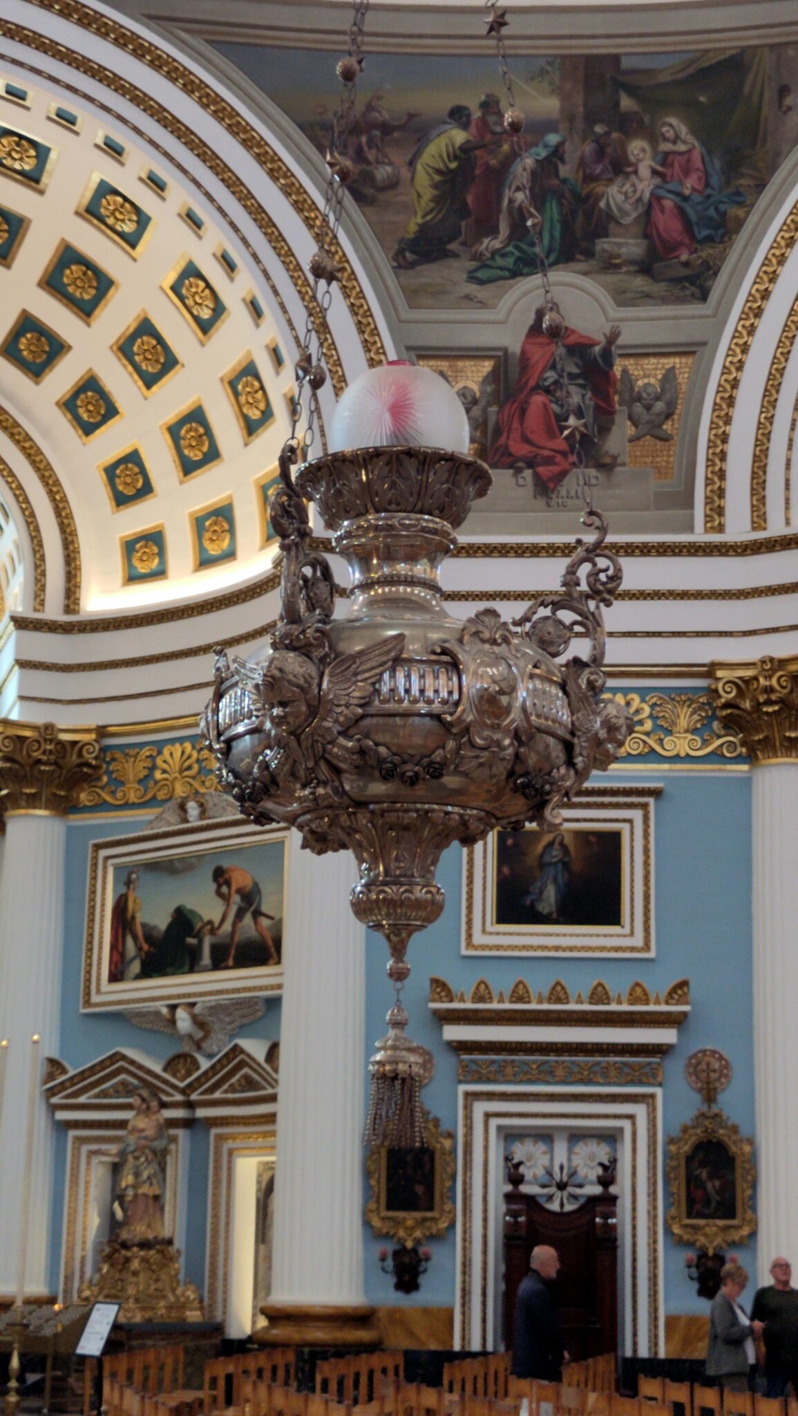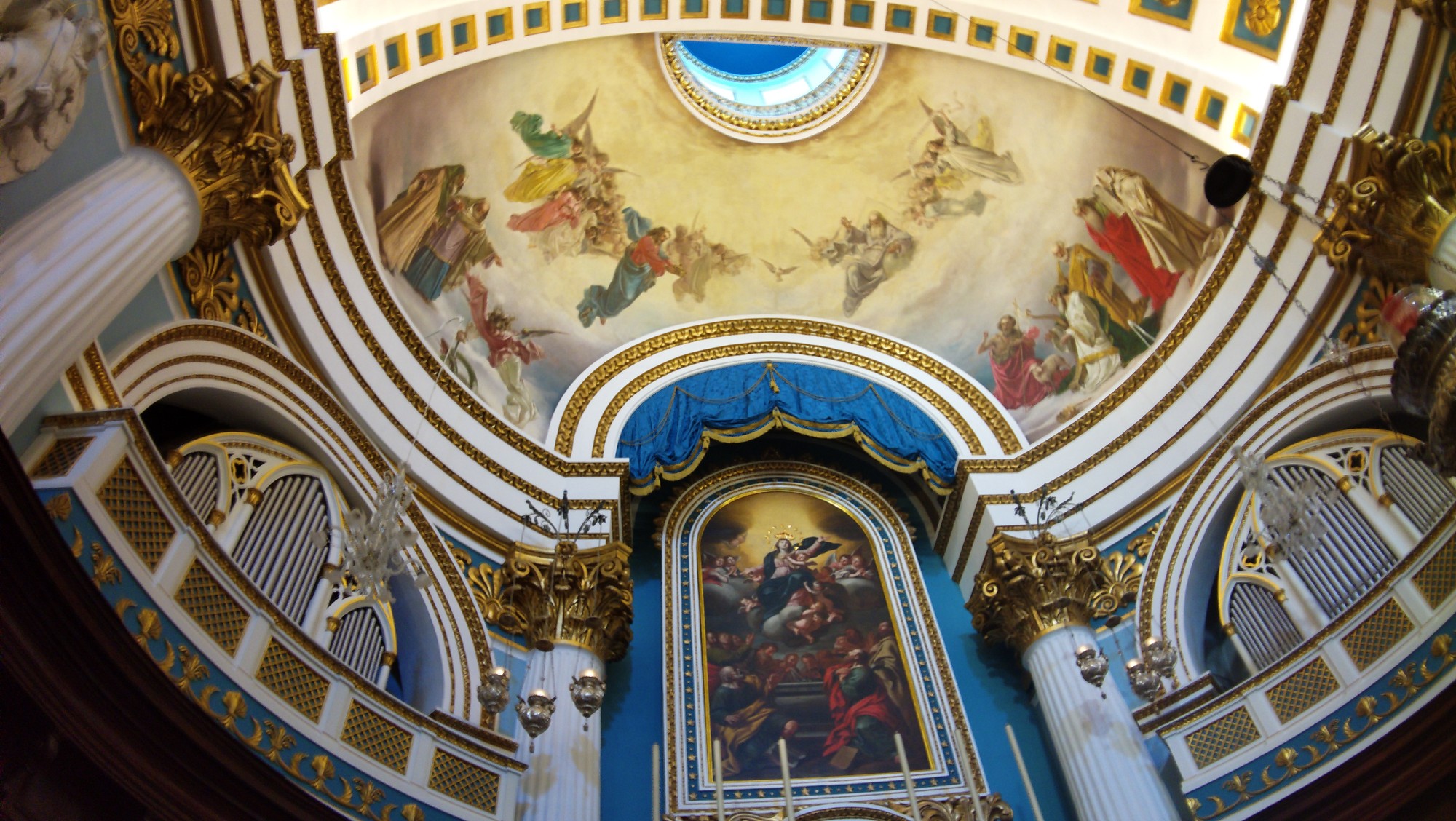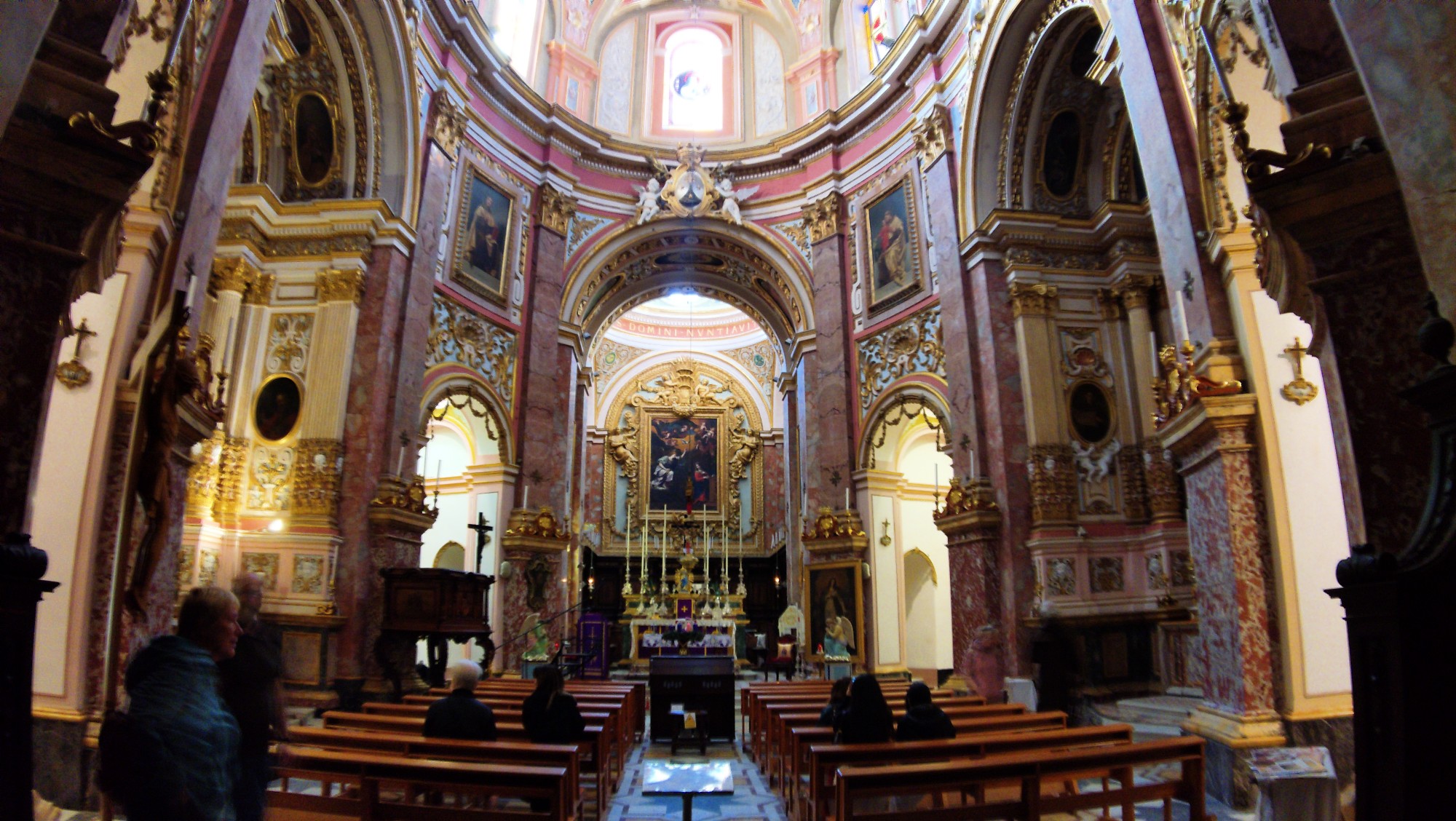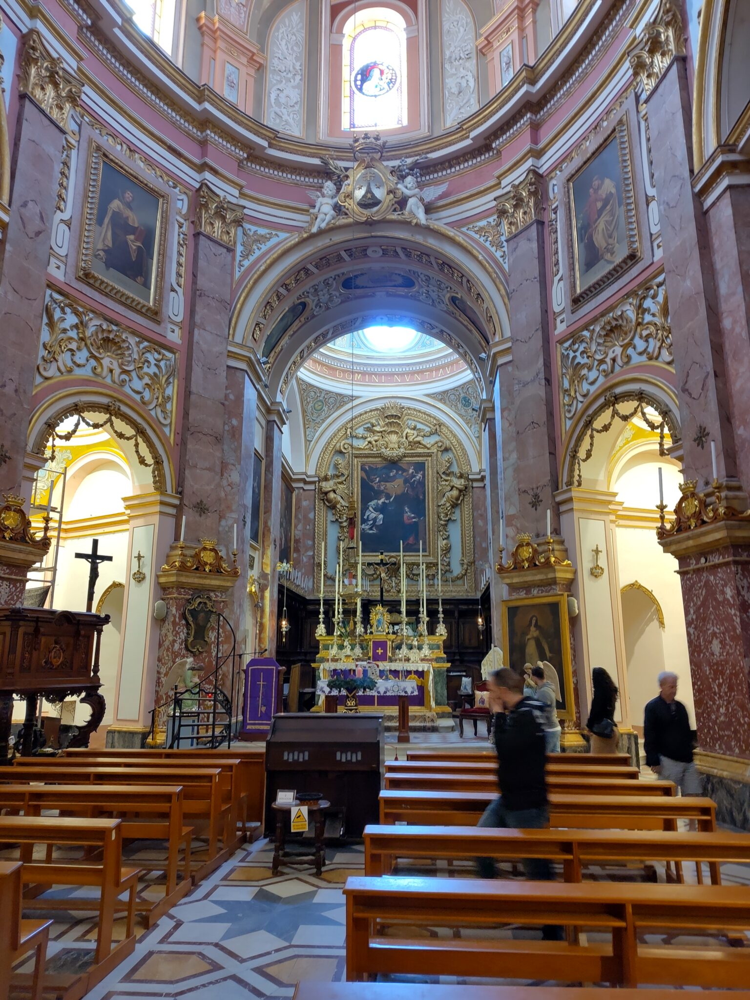 Bus fahren klappt gut, nach einer Dreiviertelstunde sind wir in Mosta. Was will man hier? Eigentlich nur den Dom angucken (oder doch die Basilika? Die Einheimischen sagen Rotunda, ist wohl am einfachsten). Die größte freitragende Kuppel der Welt sagen sie. Ist auch echt groß. Aber erstmal zweites Frühstück. Es gibt maltesisches Omelett und Ftira, eine Art belegtes Fladenbrot, gibt es hier an jeder Ecke.