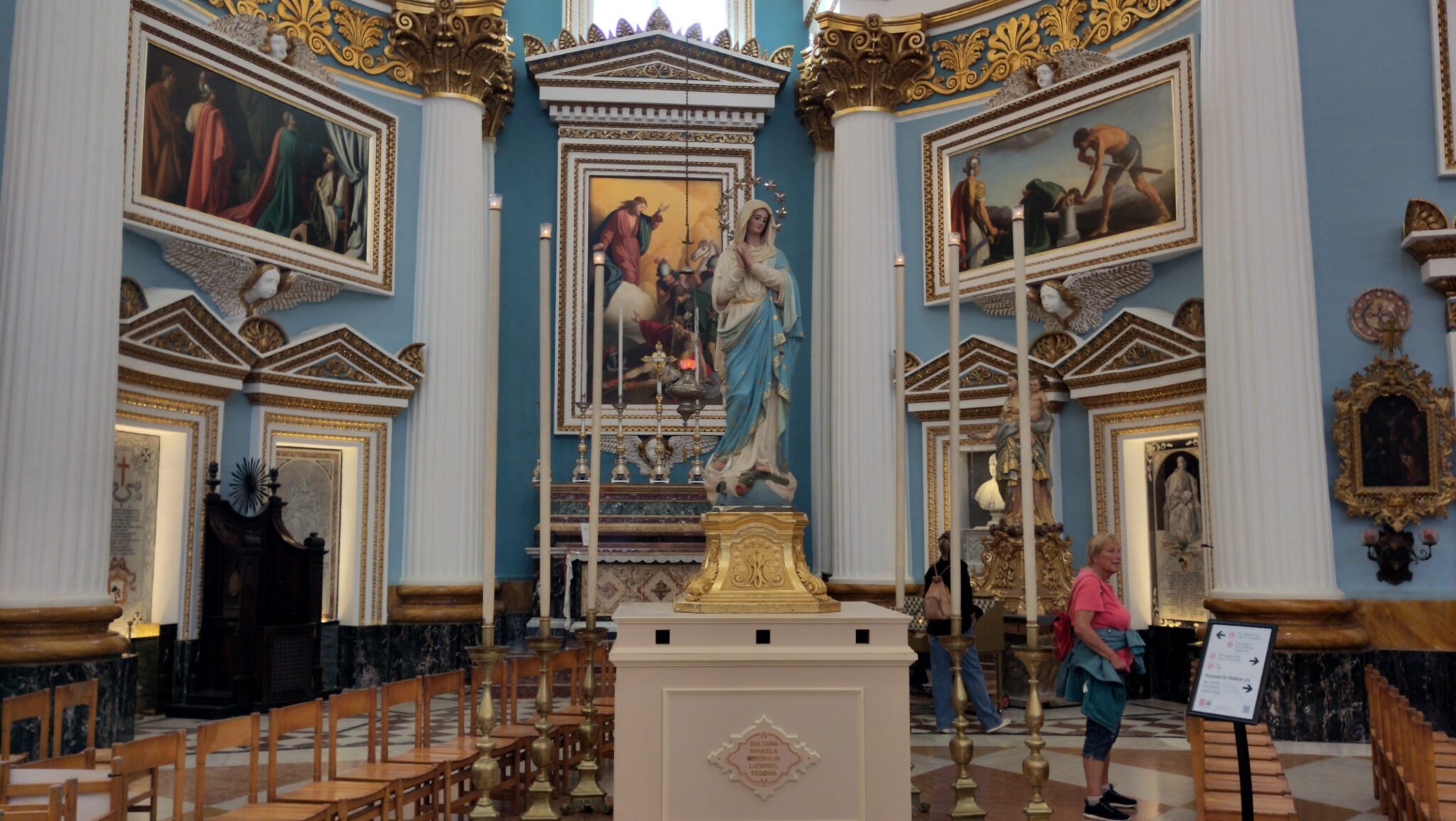 Nachdem wir beide fertig sind, entscheiden wir uns, nach Mellieħa zu fahren, also genau den Ort, den wir die ganze Zeit im Blick haben. Wegen irrem Verkehr bestellen wir uns einen Uber – eine richtig gute Idee. In wenigen Minuten und für unter 6€ sind wir in der Stadt. Rad fahren hätten wir nicht wollen und mit dem Bus sah das auch abenteuerlich aus. So haben wir es einfach und schauen uns die beeindruckende Kirche an – vor allem aber die zauberhafte Kapelle. So etwas schönes haben wir lange nicht gesehen.