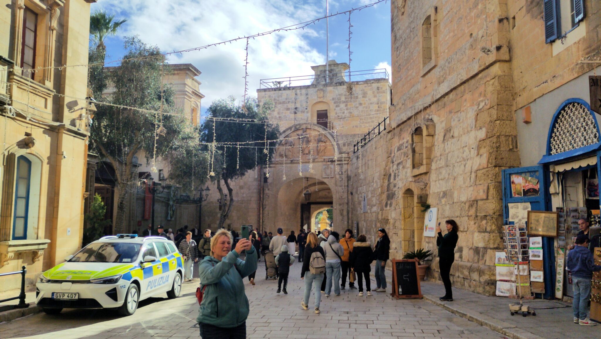 Der kommt prompt und bringt uns ohne Probleme hin. Zuerst einmal schauen wir Mdina, die alte Festung. Ein unbeschreiblicher Tourimagnet, selbst im Winter. Wie das im Sommer ist, mögen wir uns nicht vorstellen. Aber es ist halt auch schon echt hübsch, man kann die Reisegruppen verstehen (heute in der Mehrheit Franzosen)