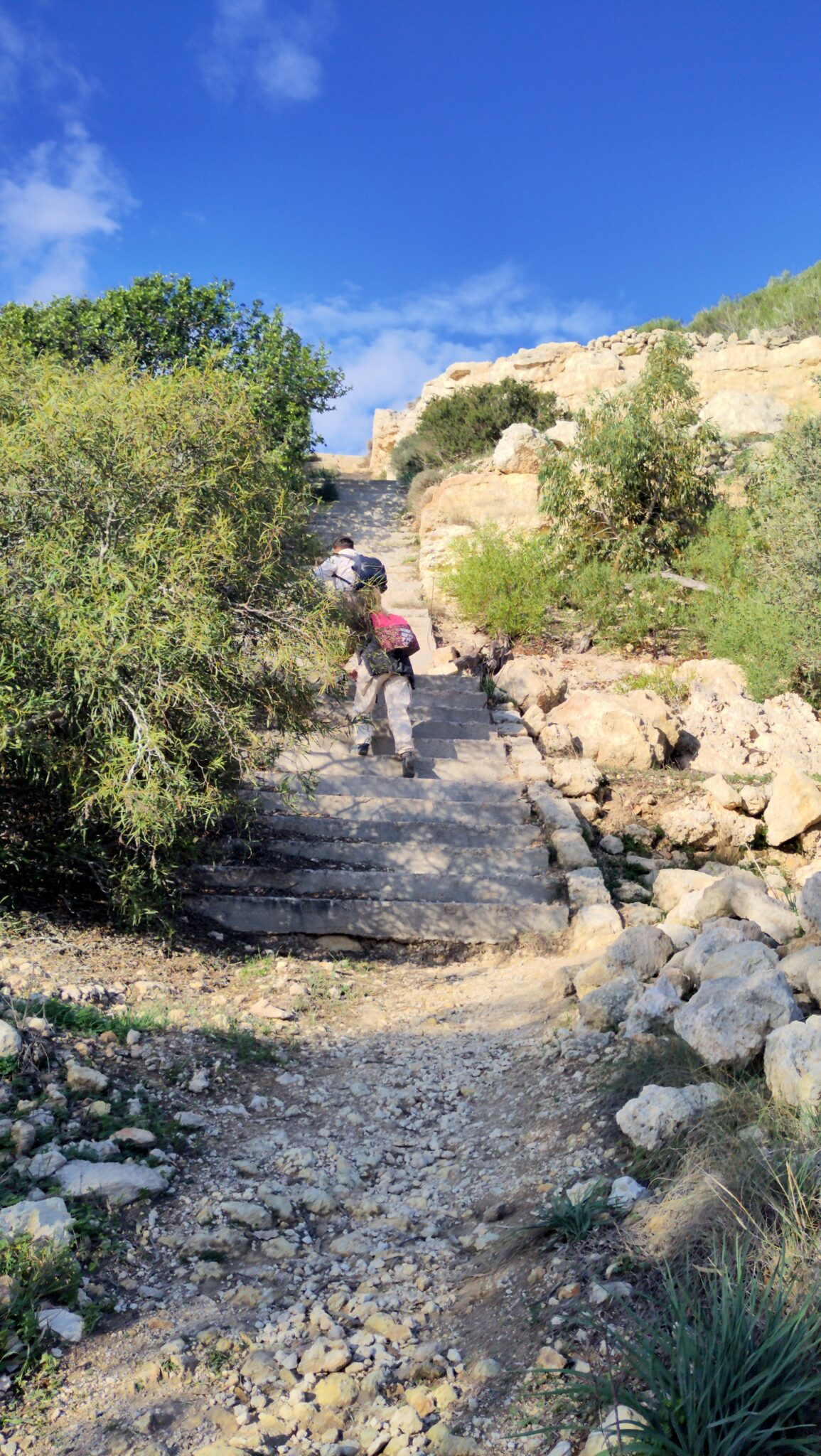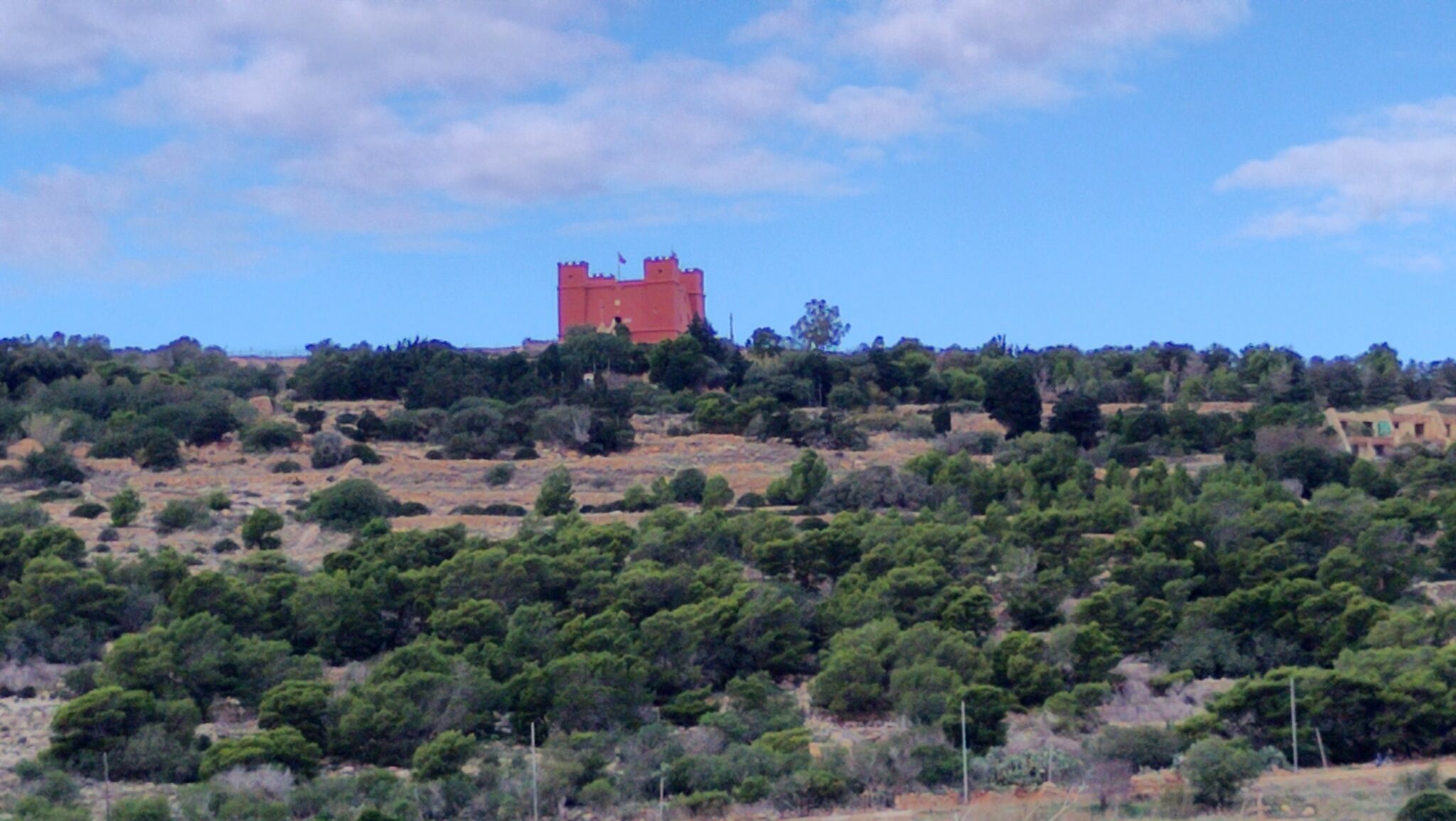 Danach erstmal eine Pause, es regnet sowieso. Aber dann schaut die Sonne wieder raus, und wir wandern hoch zum roten Turm, durch ein Mini-Wäldchen, auf das die Malteser sehr stolz sind. Es gibt hier eigentlich keine Bäume, das ist wirklich etwas besonderes.