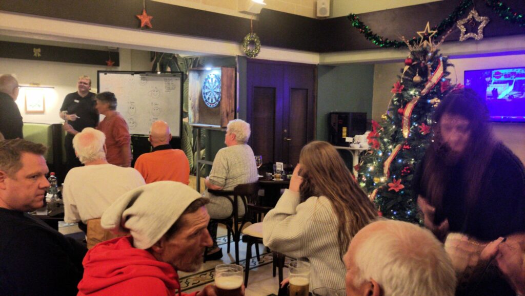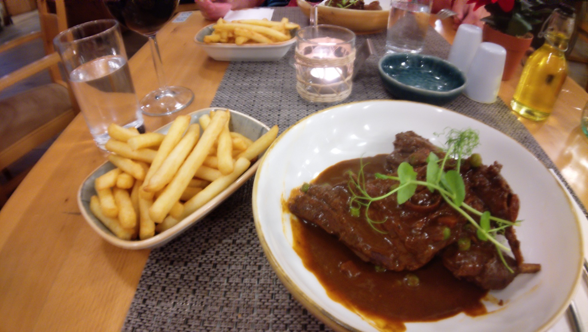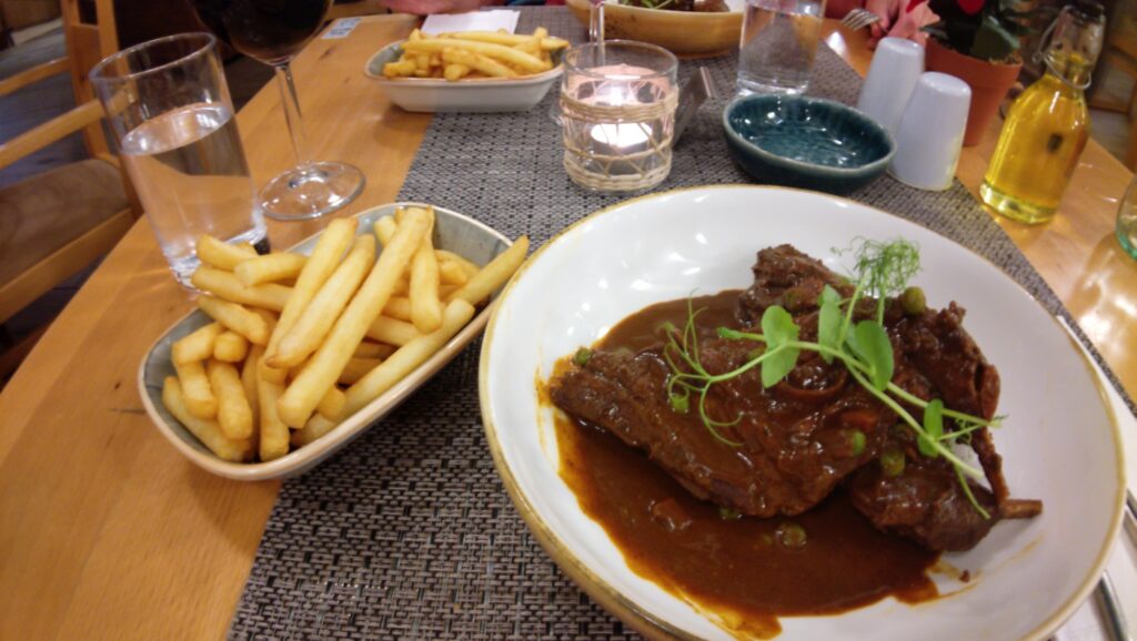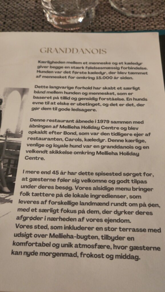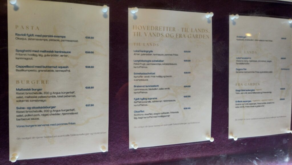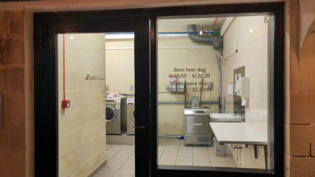 Am Nachmittag wollen wir Wäsche waschen gehen im Mellieħa Holiday Centre – so ziemlich die einzige erreichbare Waschgelegenheit auf Malta. Also gehen wir los zu Fuß die zwei Kilometer mit unserem Wäschesack bei Wind und Regen. Das Centre ist eine dänische Einrichtung – überall DänInnen, alle Schilder auf dänisch, wirklich lustig, so völlig unerwartet. Während die Wäsche wäscht, sitzen wir zwischen lauter Dänen in der Bar. Dann kommt die Wäsche in den Trockner, der ruft 1:30h auf. Also gut, dann gehen wir halt auch noch ins Restaurant. Und so kommt es, dass wir den Hasen, das maltesische Nationalgericht, in einem dänischen Restaurant zwischen lauter DänInnen einnehmen. Lustig. Auch der Nachtisch kommt eher nordisch daher, sehr lustig. Wir haben viel Spaß und einen ordentlichen Schwips, so finden wir, dass wir lieber mit dem Uber nach hause fahren, ein dickes Wäschepaket haben wir ja auch.
