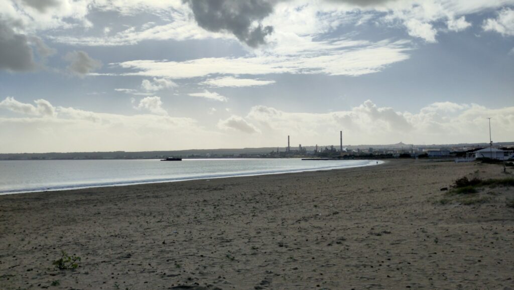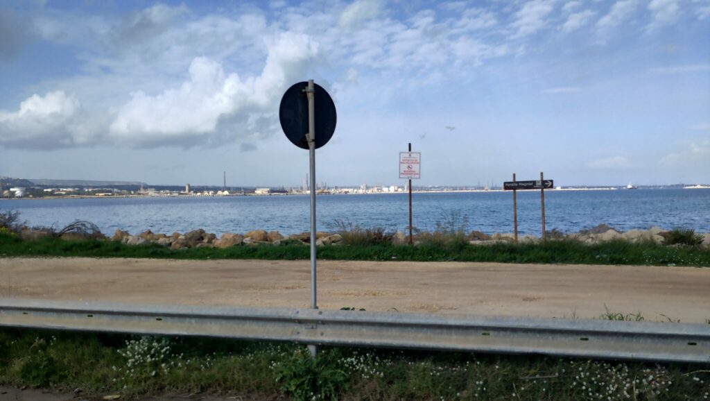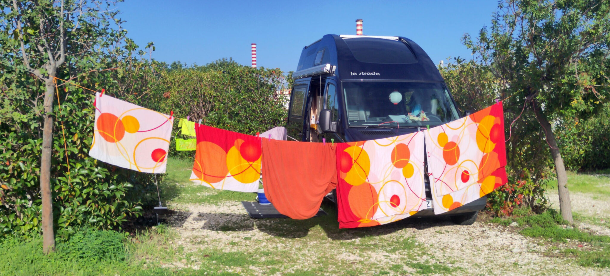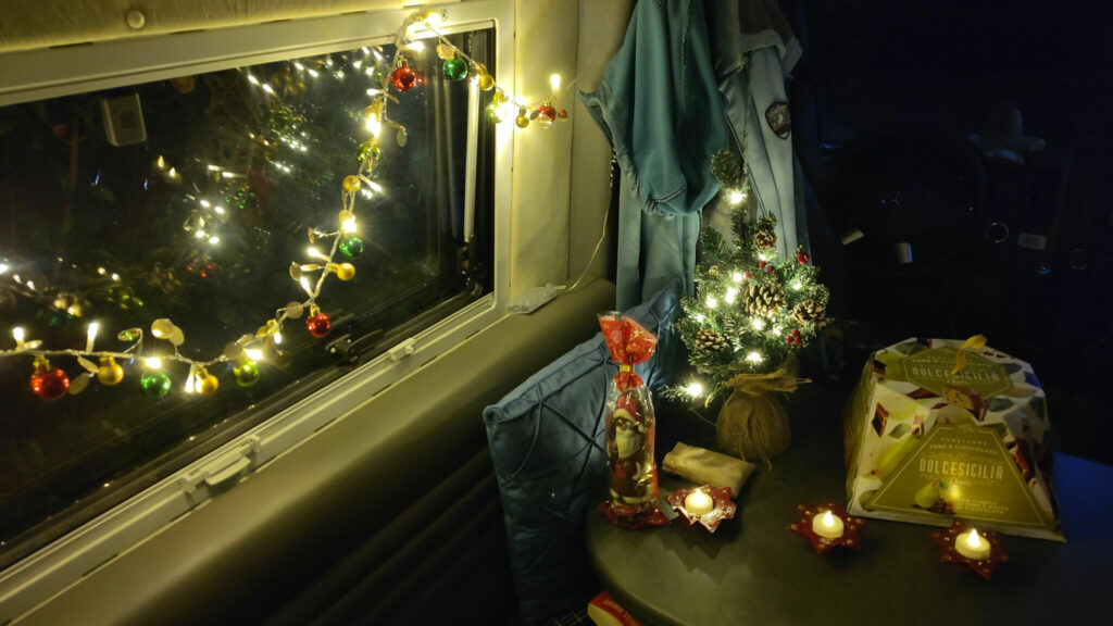Das Wetter ist immer noch mau, wir sind froh, als wir den Schlammplatz verlassen haben. Heute gibt es mal wieder Autobahn, das erste mal seit Festlandfrankreich und so sind wir bald in Siracusa. An Heiligabend soll es Kartoffelsalat und Würstchen geben, daher machen wir einen Abstecher zu Lidl, da gibt es das. Nach einigem Hin und Her landen wir auf dem Platz im Norden von Syracus, der von zwei jungen Frauen geführt wird und erst kürzlich eröffnet hat. Auf Google Maps kann man noch sehen, wie es vorher ausgesehen hat – eine enorme Leistung, das so hübsch herzurichten. Die Mädels erzählen uns, dass die fünf Jahre lang daran gebaut haben und derweil von Arbeitslosengeld gelebt – so lange hat der Umbau gedauert, und natürlich die italienische Bürokratie.