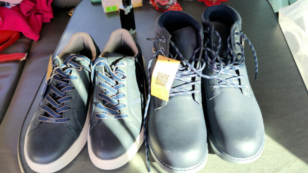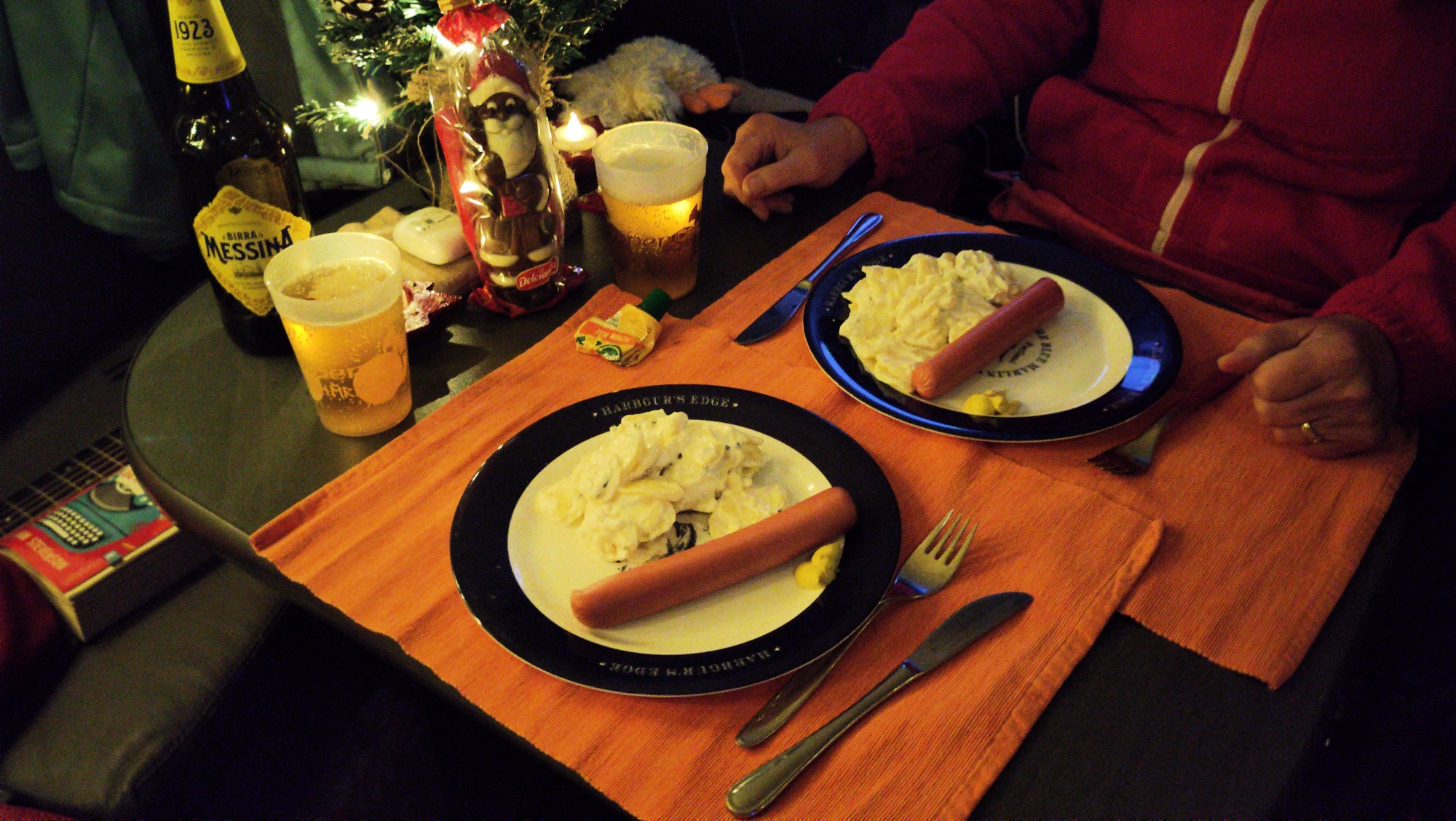 An Heiligabend wird gewaschen (endlich genug Sonne, da wollen wir nichts riskieren) und nochmal ordentlich eingekauft. Alle anderen haben anscheinend schon alles, überall ist es recht leer. Wir besuchen auch den Schuhladen, brauchen dringend wasserfeste Schuhe.