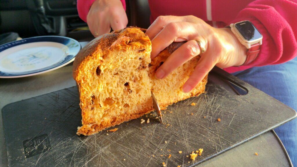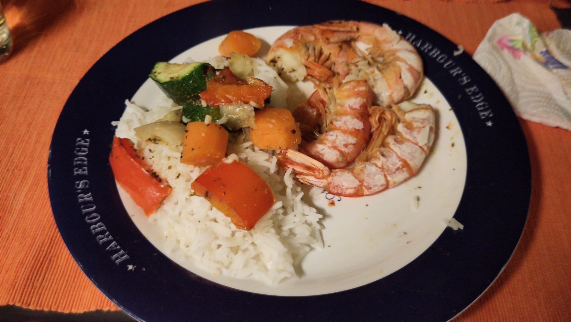 Am 1. Feiertag gibt es den leckeren Panettone und abends gibt es Gambas mit Gemüse aus dem Omnia, sehr lecker.