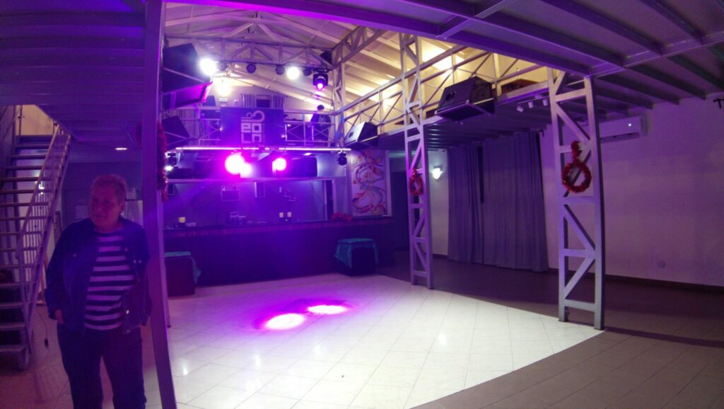 Gegen 22:15 gehen wir los, es ist irgendwie immer noch leer. Erst gegen 23:00 tut sich was. Aber was wir uns vorgestellt haben, nämlich eine Silvesterfeier, das gibt es nicht, nur ein Disco, die zufällig am 31.12. ist. Hätten nicht ein paar Leute geböllert, wäre der Jahreswechsel gar nicht aufgefallen. Wegen strömendem Regen können wir auch nicht vor die Tür. Und zu trinken gibt es erst gar nichts, und dann ist die Schlange so lang, dass wir frustriert aufgeben. Ein Glück haben wir genug in Womie. Nun ja, auch mal eine Erfahrung. Zu gucken gab es jedenfalls genug, das war ziemlich spannend.