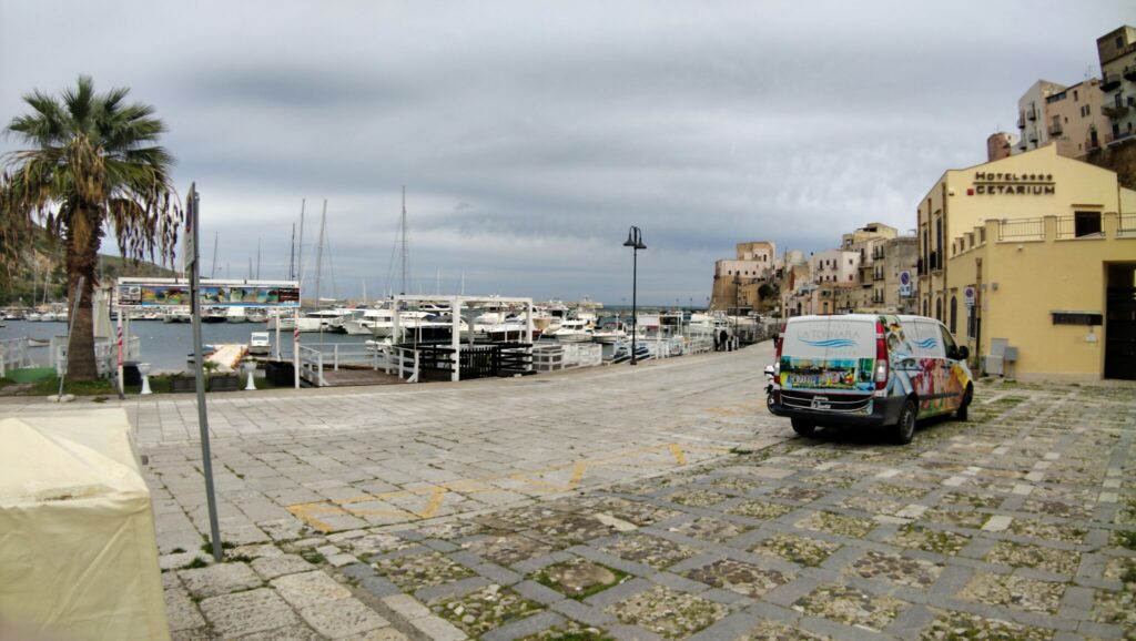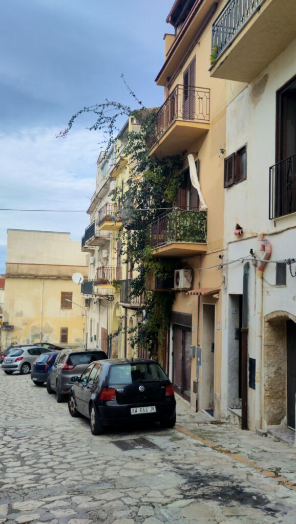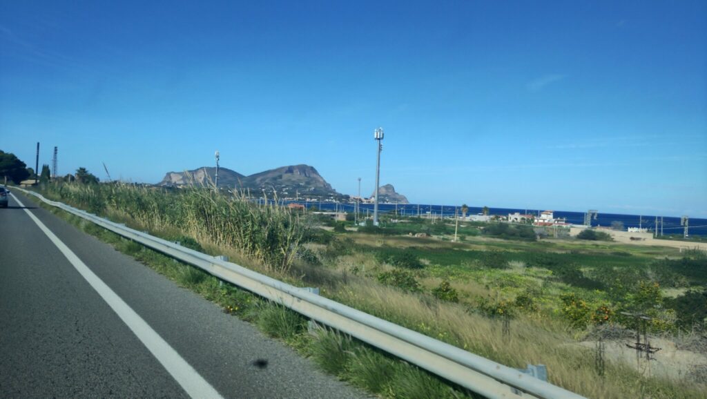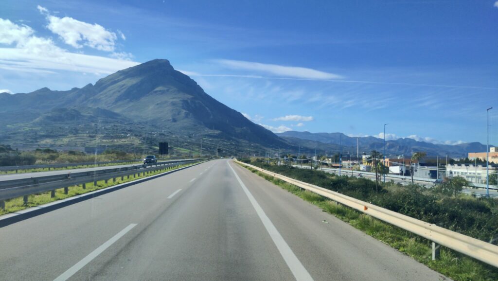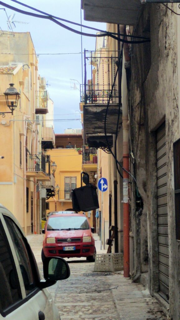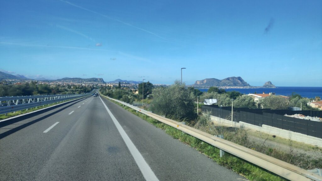 Weiter geht’s! Wir fahren einmal quer durch Sizilien, in den Nordwesten. Weil wir eine Gasflasche brauchen, fahren wir einmal vergeblich in den Bergen durch die Pampa und uns in der Vorstadt von Palermo in einer winzigen Straße fest. Wer zusehen will, wie wir uns immer mehr verfranzen und zum Schluss an einem geschlossenen Tor scheitern und dann in einer Straße wenden müssen, die kaum breiter ist als Womie, bitteschön: