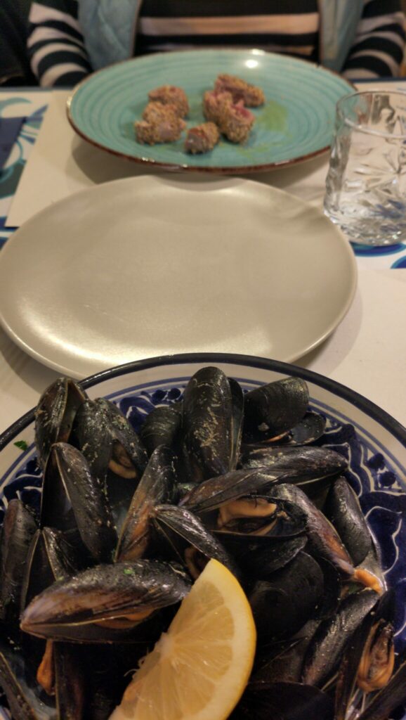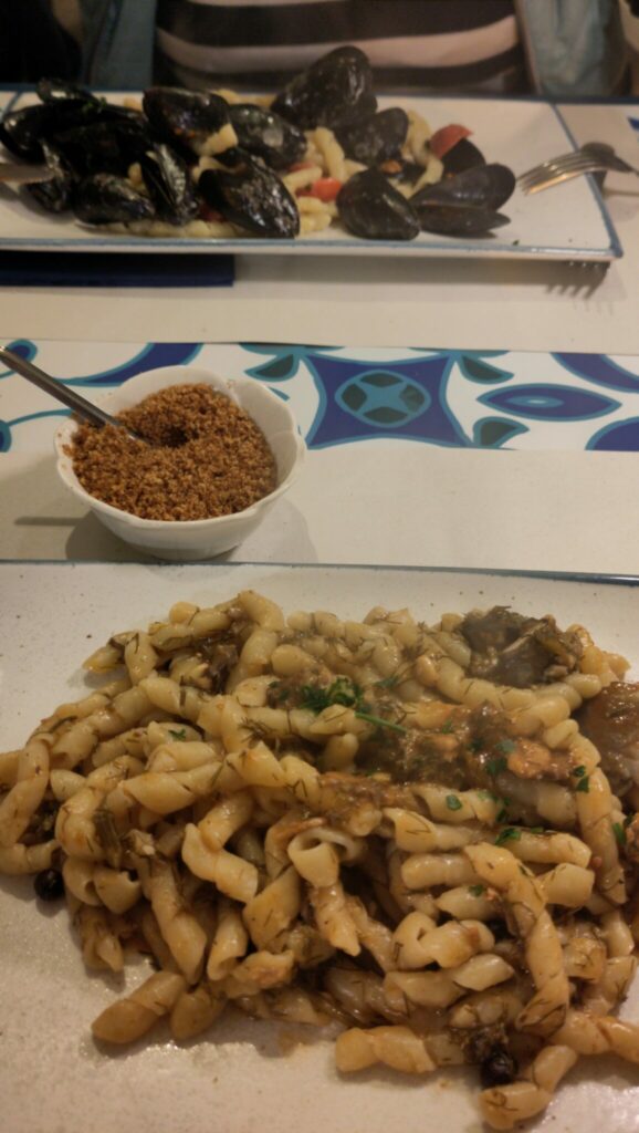 Im Hafen haben wir uns einen Platz im Fischrestaurant reserviert, einmal richtig sizilianische Fischplatte essen bevor wir bald die Insel verlassen. Auch abends kann sich das Städtchen sehen lassen. Das Restaurant ist super gemütlich, toller Service und das Essen ein Gedicht. Satt und zufrieden laufen wir nach hause.