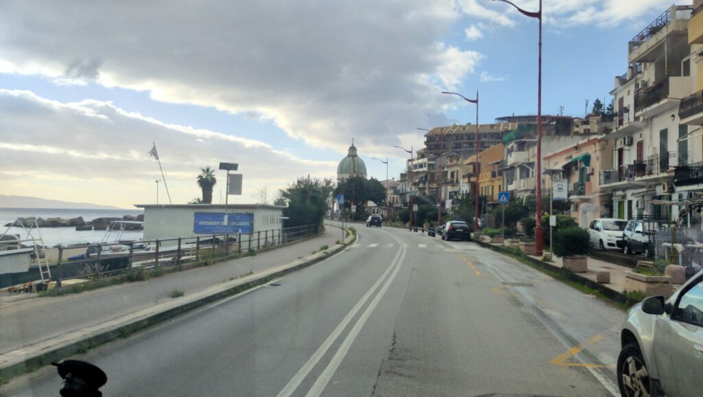 Heute ist Fahrtag. Wir verlassen Sizilien auf der Suche nach einem Ort mit besserem Wetter. Nicht einfach, ganz Süditalien wird von Sturm und Regen heimgesucht. Wir entscheiden uns für die Adria, ob das schlau ist, wird sich noch zeigen. Auf Autobahn haben wir keine Lust, fahren also durch Messina. Das ist ganz unterhaltsam, vor allem was den Fahrstil der Italiener angeht.