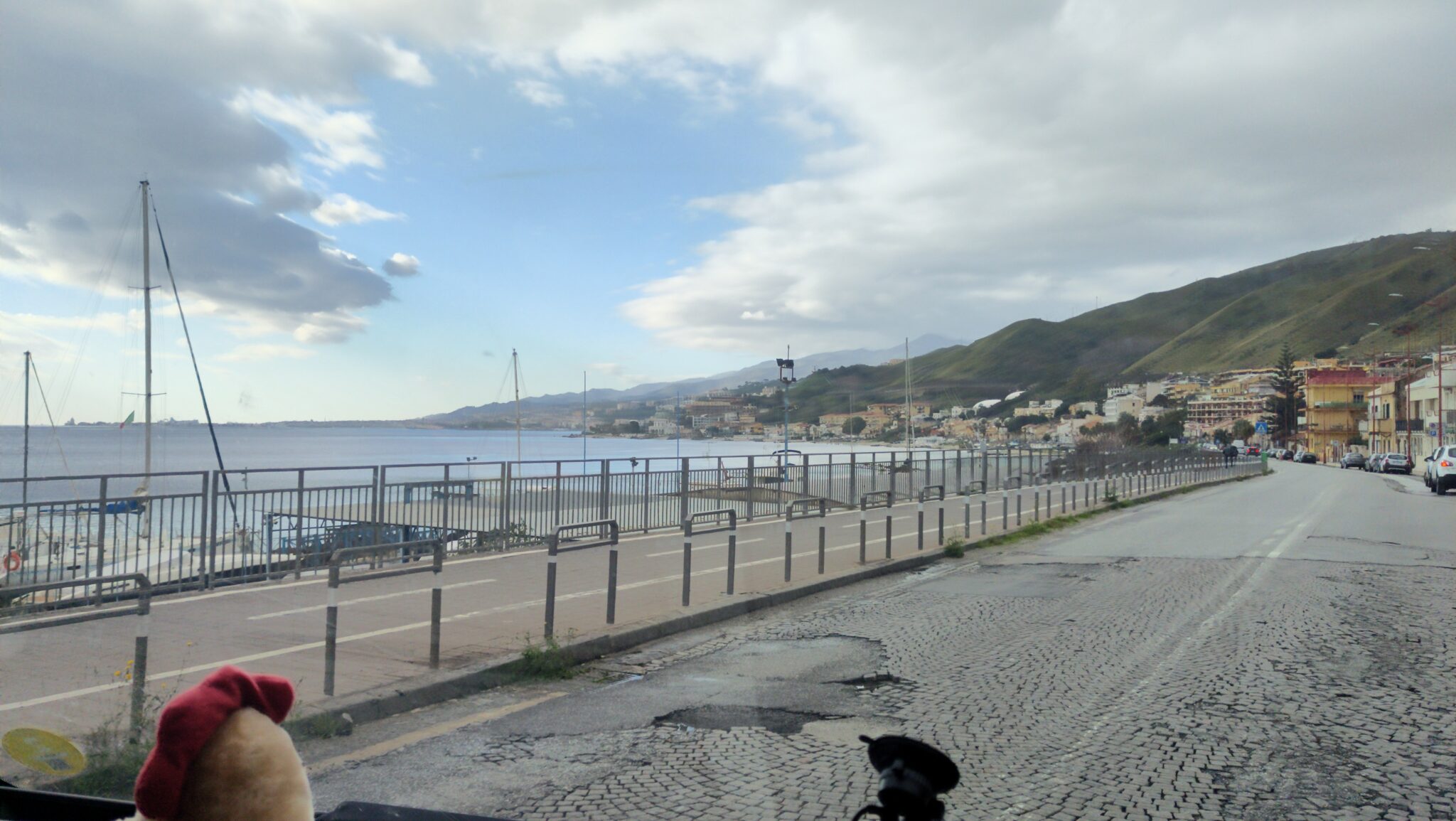 Heute ist Fahrtag. Wir verlassen Sizilien auf der Suche nach einem Ort mit besserem Wetter. Nicht einfach, ganz Süditalien wird von Sturm und Regen heimgesucht. Wir entscheiden uns für die Adria, ob das schlau ist, wird sich noch zeigen. Auf Autobahn haben wir keine Lust, fahren also durch Messina. Das ist ganz unterhaltsam, vor allem was den Fahrstil der Italiener angeht.
