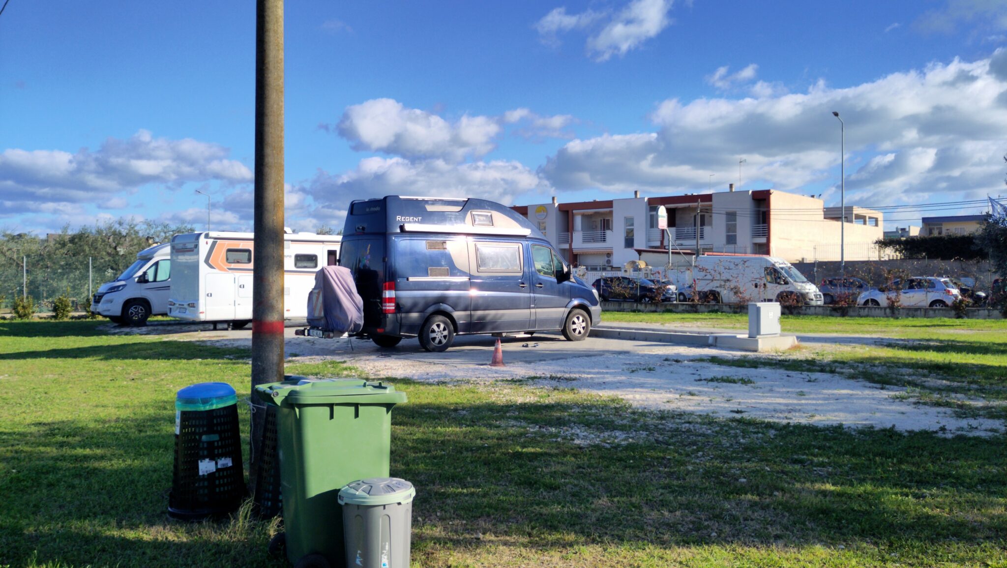 Am Mittwoch versuchen wir, zu waschen – aber die Waschmaschine auf dem Platz ist gar nicht angeschlossen. Pech. Und eine Gasflasche bekommen wir auch nicht, es ist nie jemand da in dem Gasflaschenladen und auch in den anderen Optionen, die Google so auswarf, haben wir kein Glück. Wir versuchen es morgen noch einmal anderswo, wir brauchen ja eine – auch wenn die italienische Wunderflasche immer noch nicht leer ist, dabei haben wir die zuletzt in Palermo getauscht, also vor 12 Tagen – bei der Kälte hätten wir nicht gedacht, dass die so lange hält.