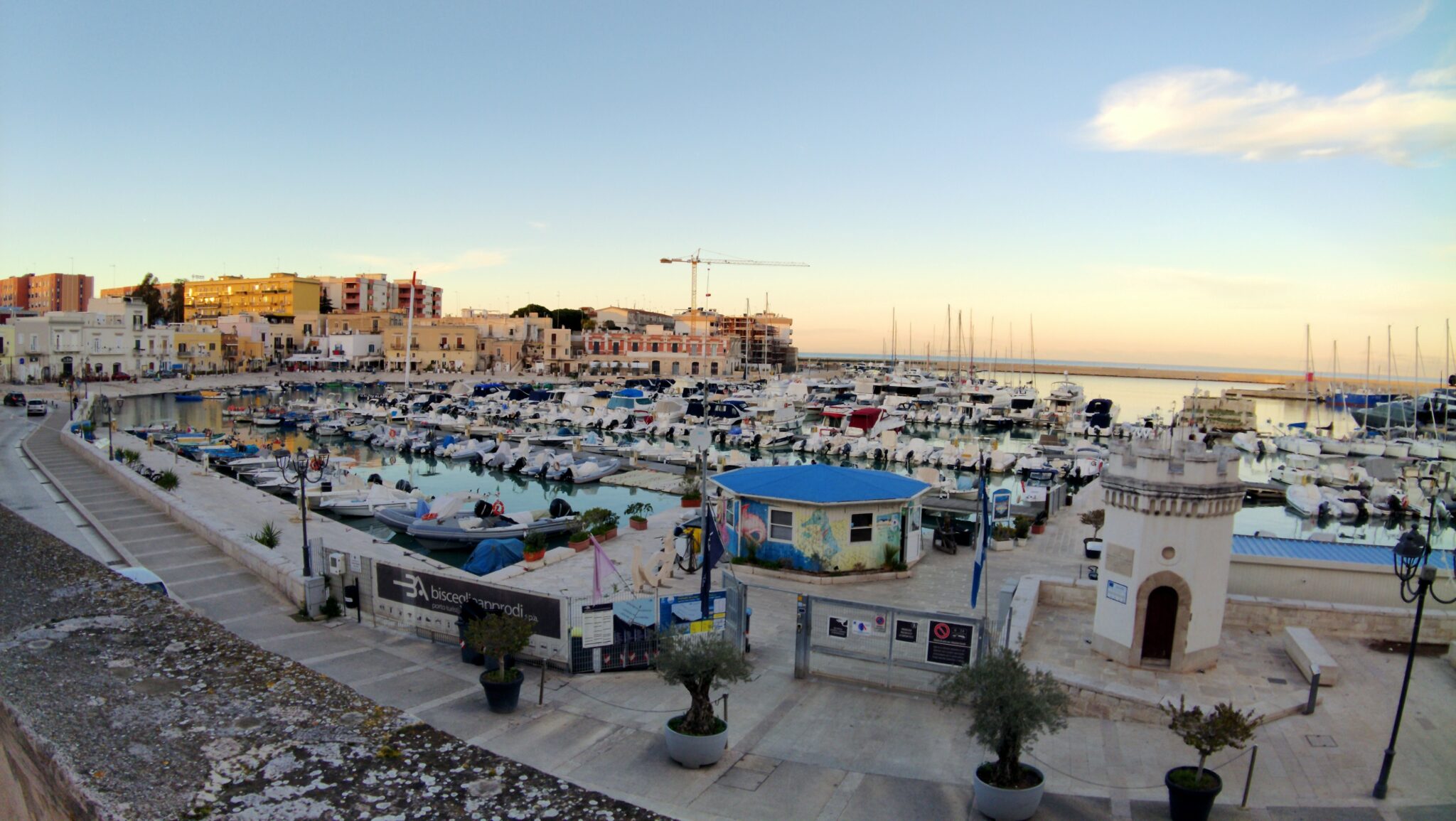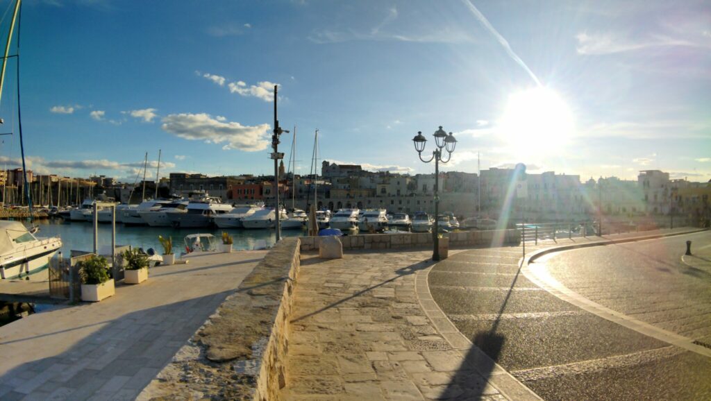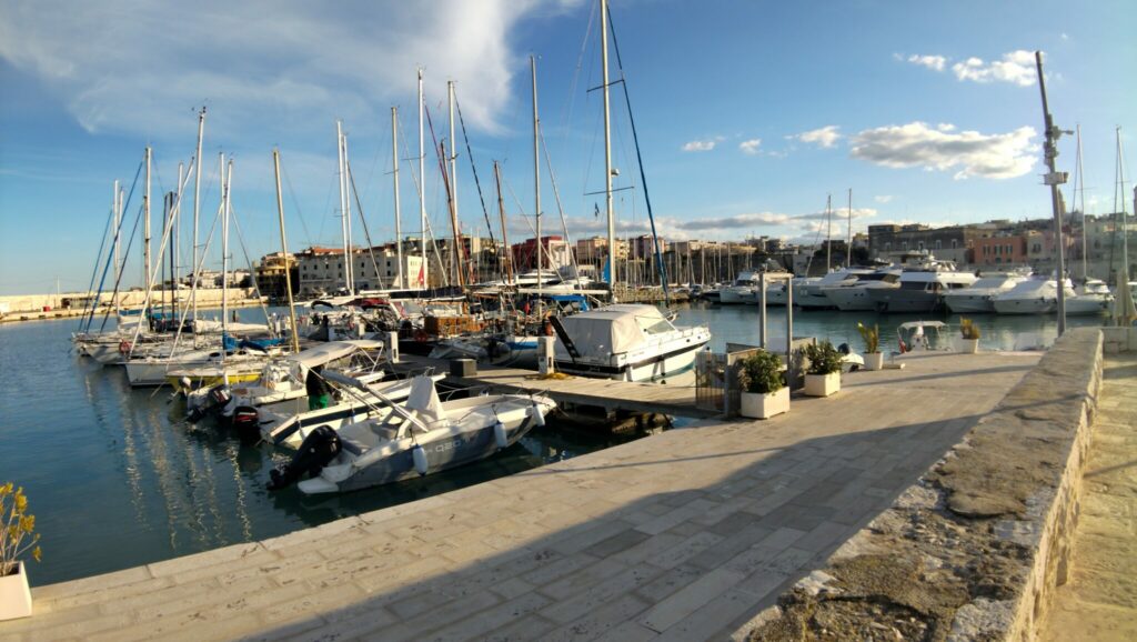 Eigentlich wollten wir von Taranto aus nach Locorotondo, aber der Platz hatte geschlossen, tja. Also nach Alternativen suchen. Wir suchen und finden Bisceglie, einen sehr netten Ort an der Adria, der kaum bekannt ist – schade, denn es ist wirklich hübsch hier.