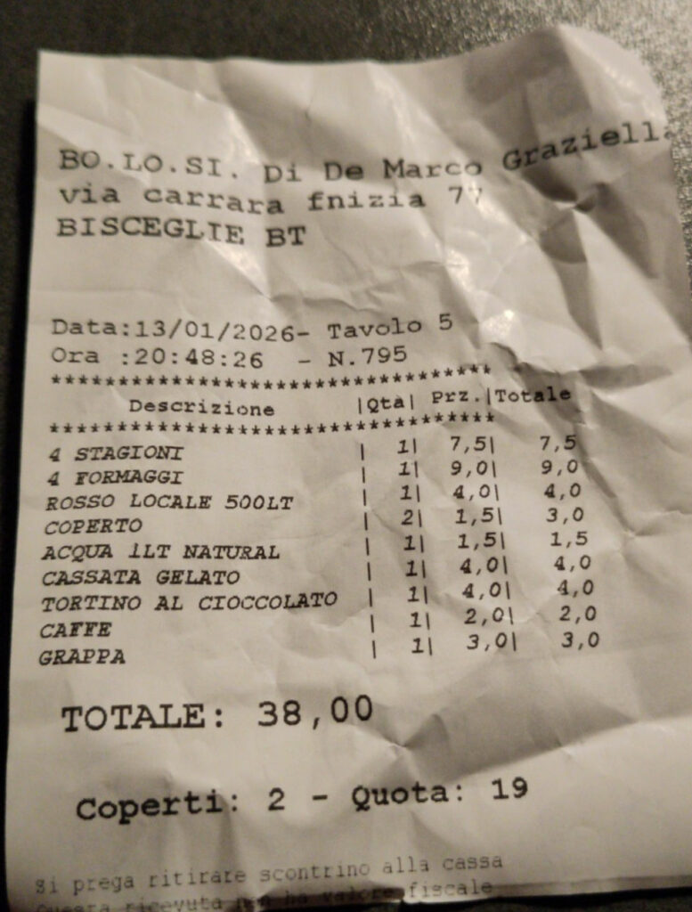 In Bisceglie ist es saukalt. Wir haben Sorge um die Gasflasche, aber die hält erstmal gut. Nach der Arbeit drehen wir immer mal eine Runde durch die Stadt – am Montag nur kurz, am Dienstag etwas länger und mit Cafébesuch, wir haben ja zweistellige Temperaturen.