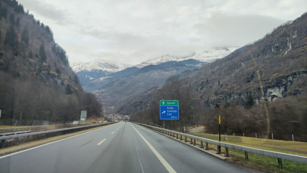 Noch einmal eine lange Tour, bis in die Schweiz. Wir fahren durch das rappelvolle, neblige Norditalien, bis wir ab Chiasso dann durchgehend Alpenpanorama haben – und ähnliche Temperaturen wie letzte Woche in Italien. Passt! Direkt hinter dem Gotthardtunnel liegt das winzige Wörtchen. Den Abend verbringen wir ganz allein und sind froh, dass mal gar nichts los ist. Wir kochen, erledigen noch einiges und später wiegt uns das Rauschen der Reuss in den Schlaf.