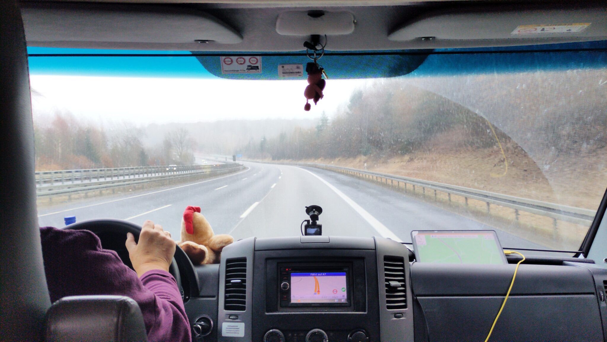 Mit immer noch grummeligen Bäuchen machen wir uns auf den Heimweg – zügig, denn der anstehende Wetterumschwung soll uns nicht auf der Straße erwischen. Die Autobahn ist am Sonntag Morgen völlig leer, es gibt wenig zu erzählen.