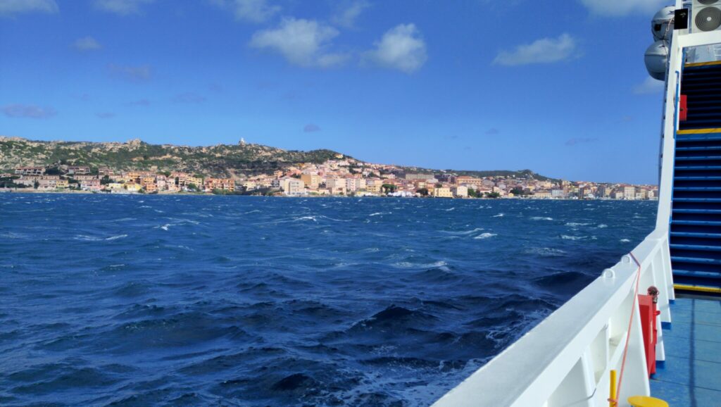 Also weiter nach Palau auf den Platz am Hafen. Auch da ist es Hölle windig, aber irgendwo müssen wir ja mal hin und hier fährt die Fähre auf die Maddalenas, die wir morgen nehmen wollen.